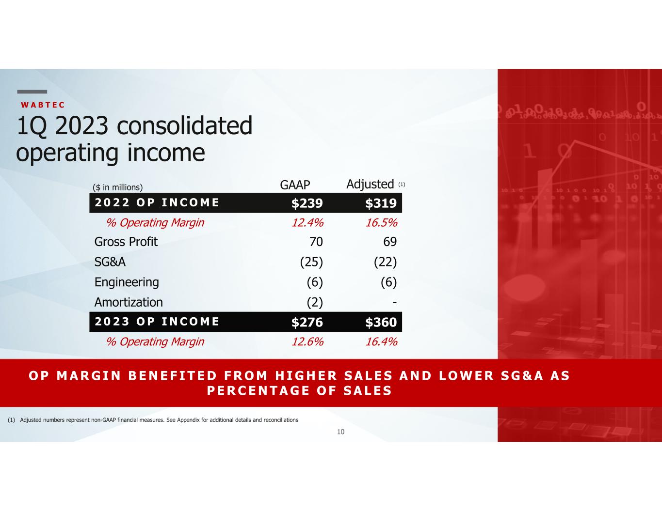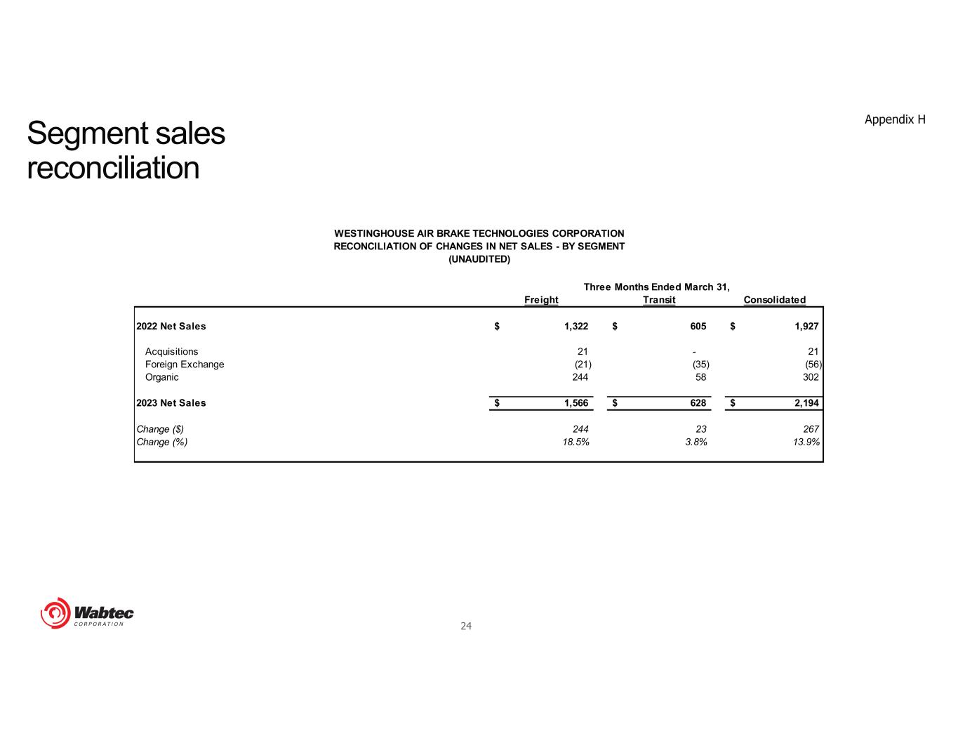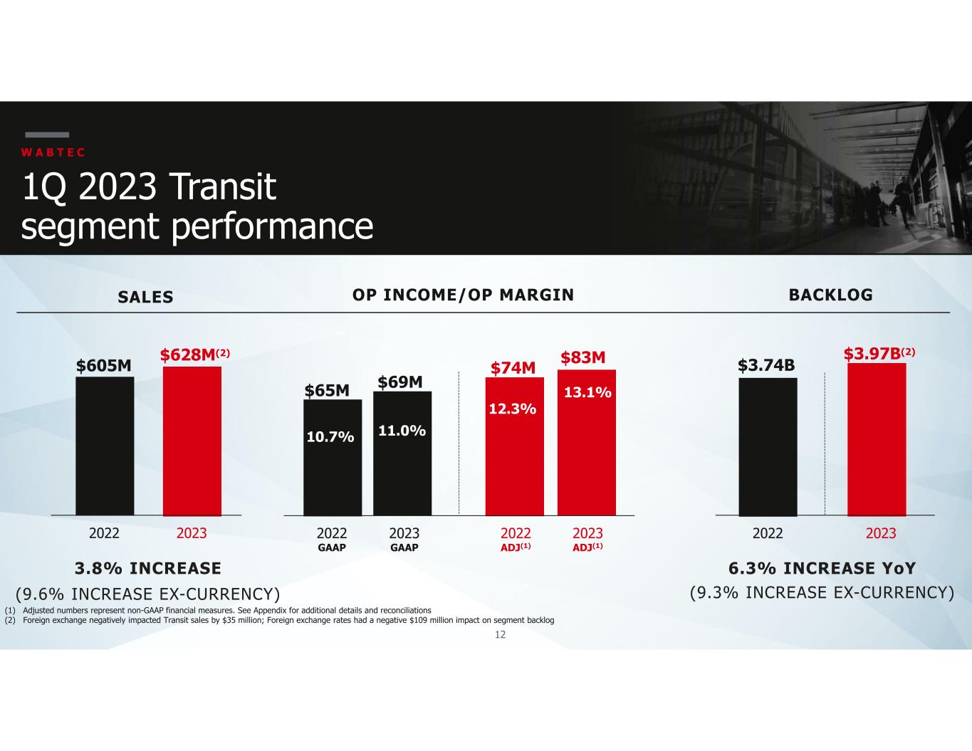 •Sales increased 13.9% compared to the year-ago quarter driven by significantly higher Freight segment sales and increased Transit segment sales. On a constant currency basis, consolidated sales were up 16.8%.