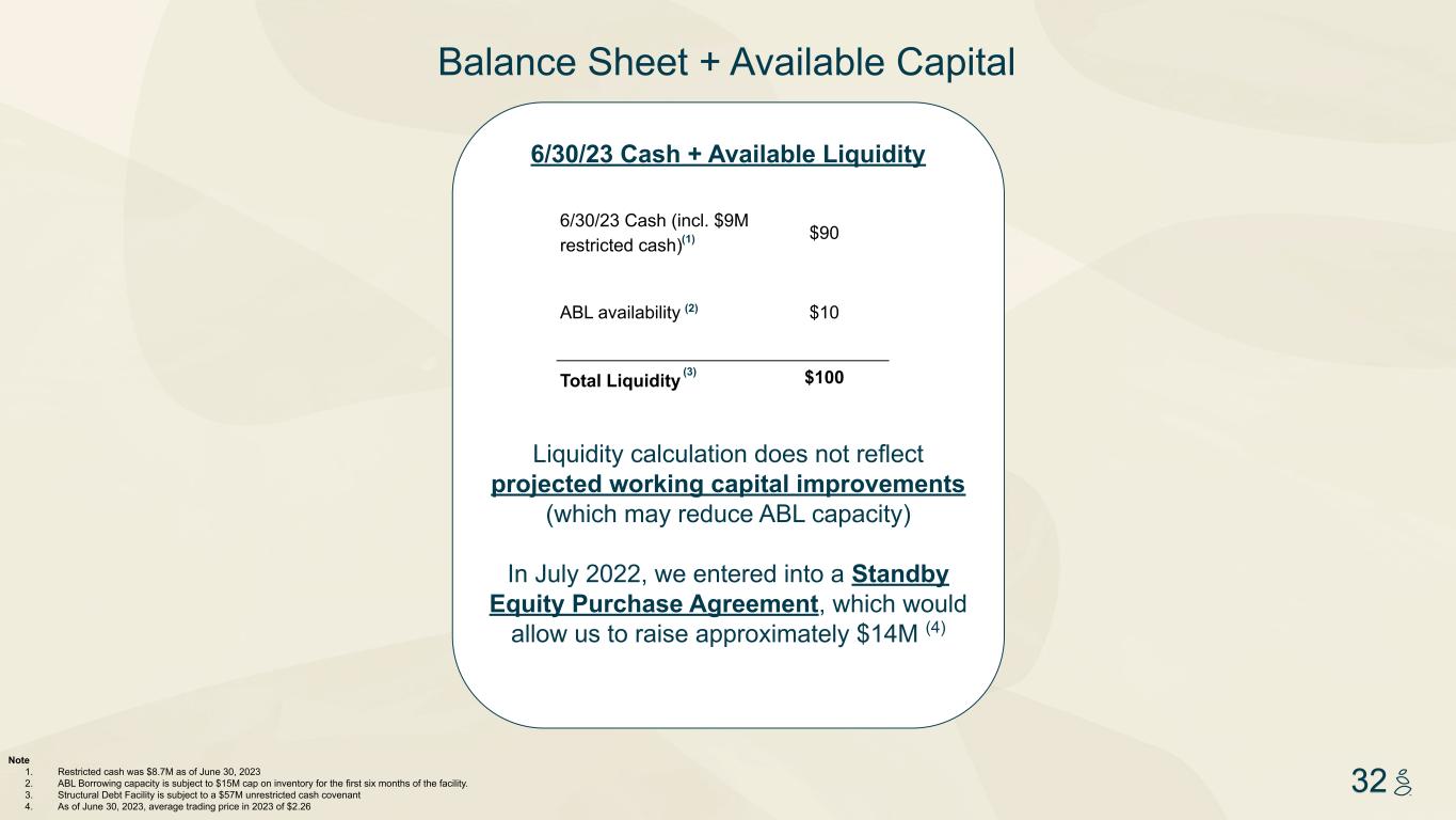 4.The Company is in discussions for the potential acquisition of Unconditional Love Inc. (d/b/a Hello Bello), which may be for cash, stock, or a combination of cash and stock.