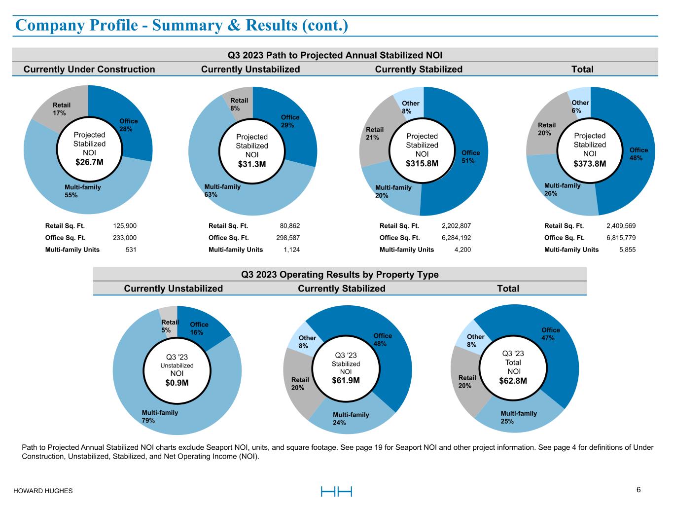 ハワード・ヒューズ・ホールディングスが2023年第3四半期の業績を発表