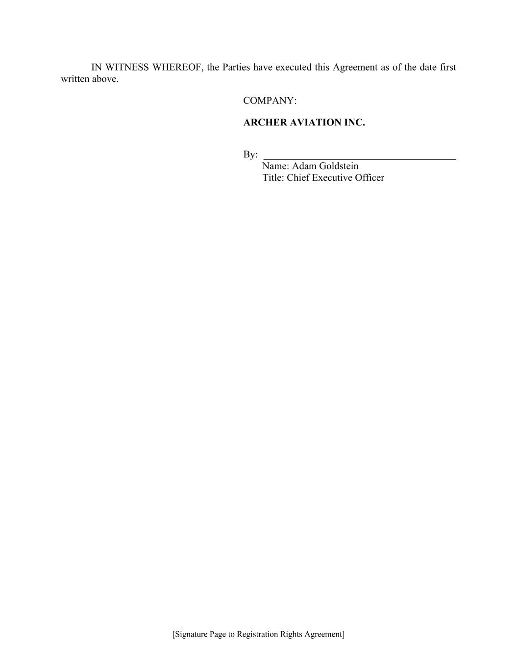 [Signature Page to Subscription Agreement] 755611974.3 IN WITNESS WHEREOF, the Company has accepted this Subscription Agreement as of the date set forth below. ARCHER AVIATION INC. By:__________________________ Name: Adam Goldstein Title: Chief Executive Officer Date: August 8, 2024