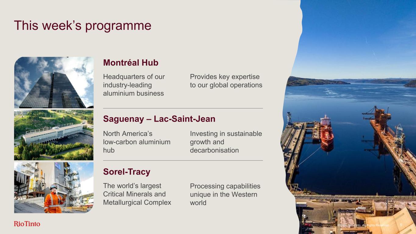 ©2024, Rio Tinto, All Rights Reserved 5 This week’s programme Montréal Hub Sorel-Tracy Saguenay – Lac-Saint-Jean The world’s largest Critical Minerals and Metallurgical Complex Headquarters of our industry-leading aluminium business North America’s low-carbon aluminium hub Processing capabilities unique in the Western world Provides key expertise to our global operations Investing in sustainable growth and decarbonisation