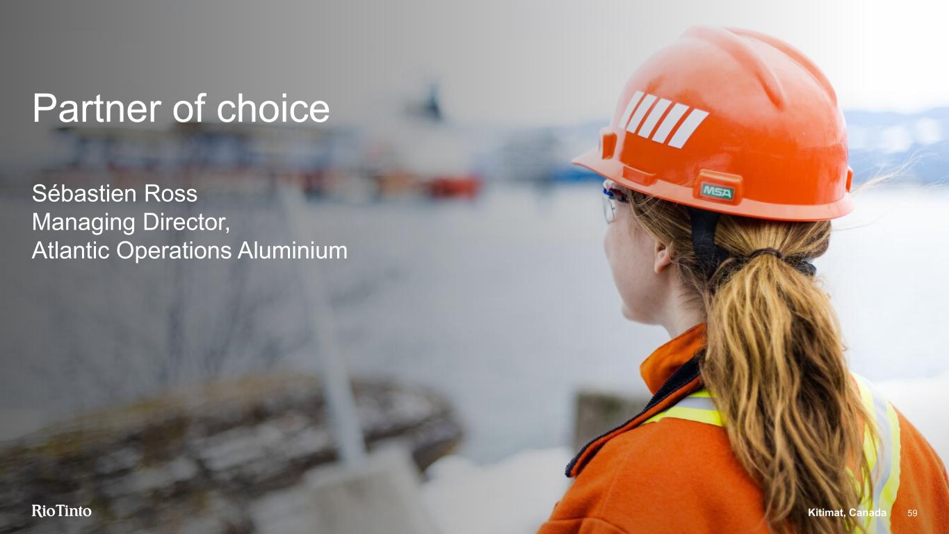 Partner of choice Sébastien Ross Managing Director, Atlantic Operations Aluminium 59Kitimat, Canada