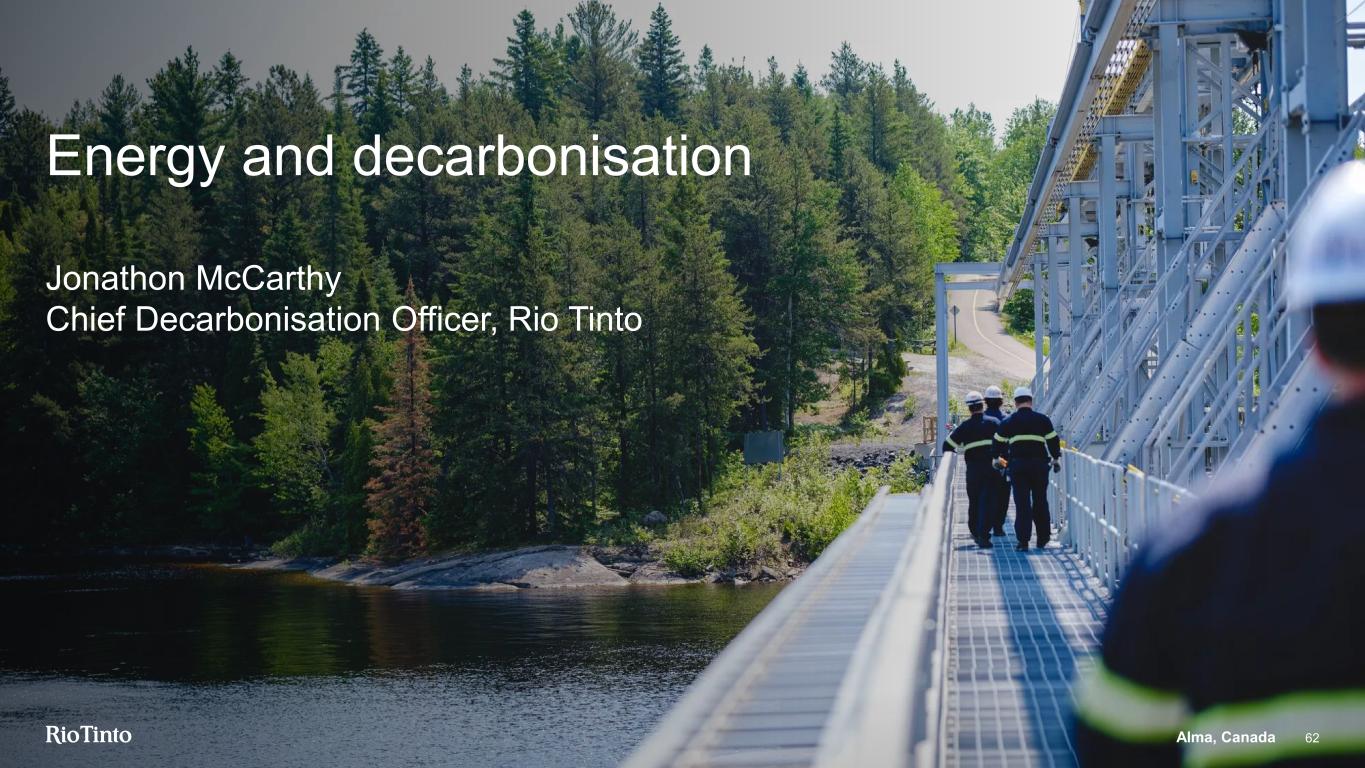 Energy and decarbonisation Jonathon McCarthy Chief Decarbonisation Officer, Rio Tinto 62Alma, Canada
