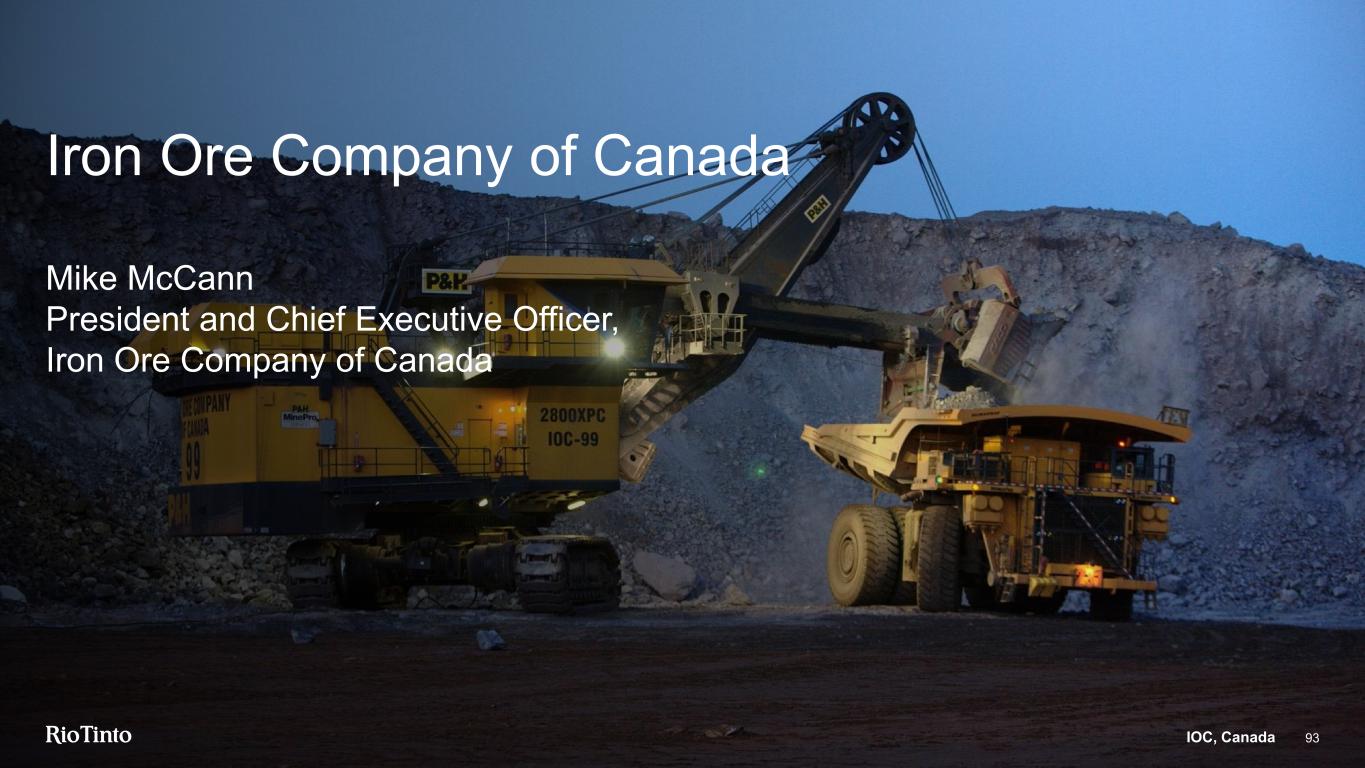 Iron Ore Company of Canada Mike McCann President and Chief Executive Officer, Iron Ore Company of Canada IOC, Canada 93