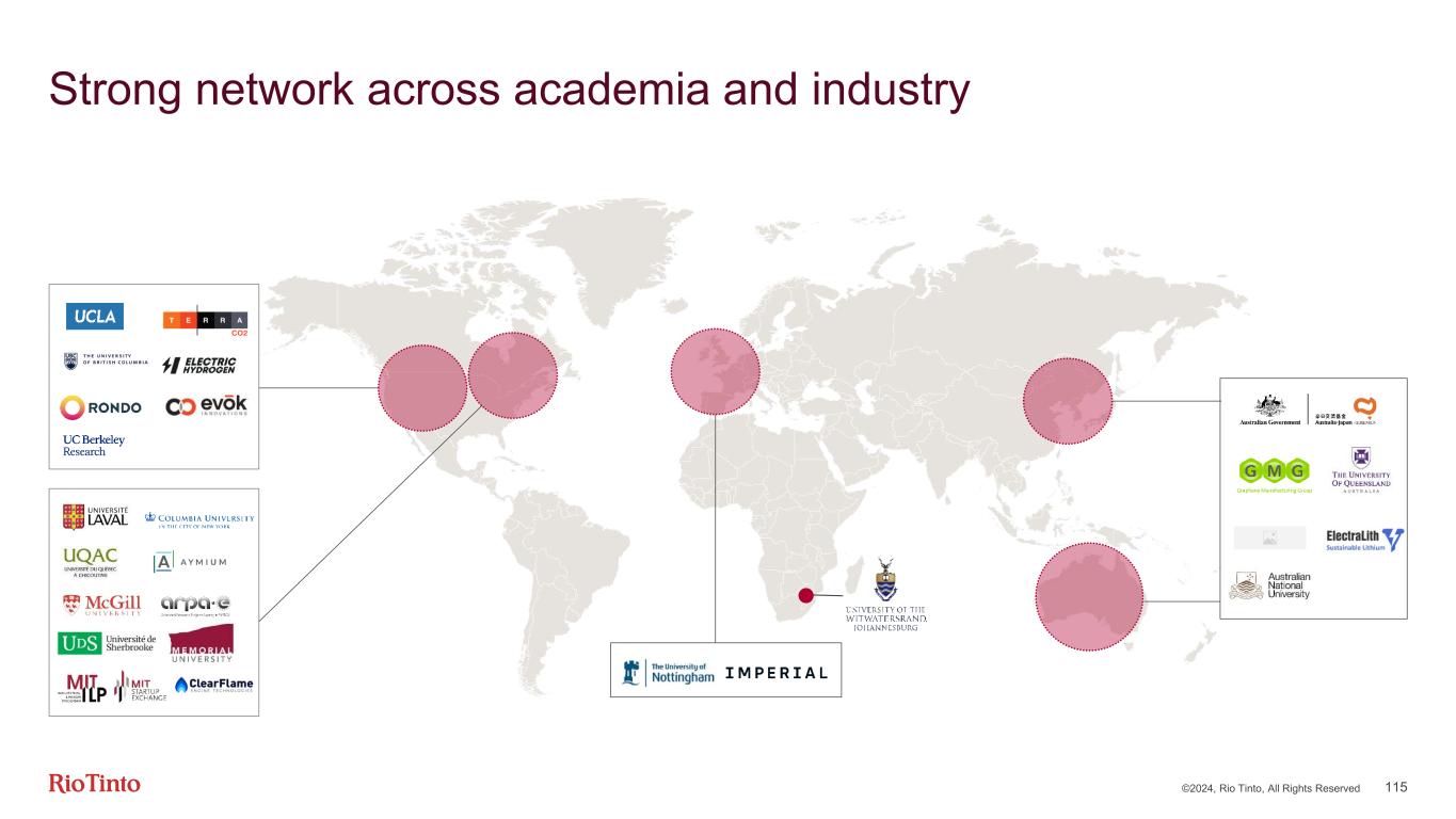 ©2024, Rio Tinto, All Rights Reserved 115 Strong network across academia and industry