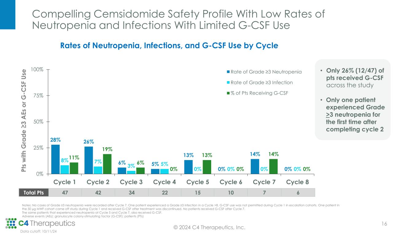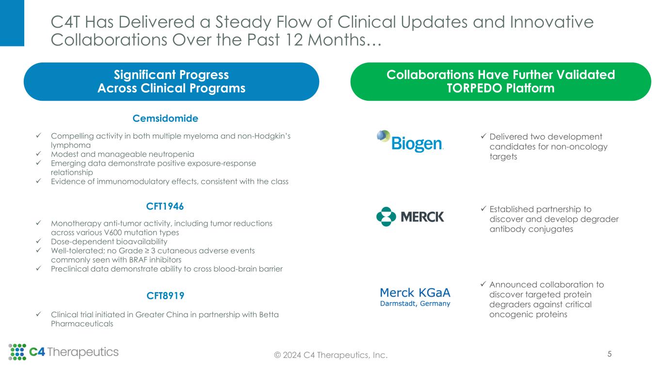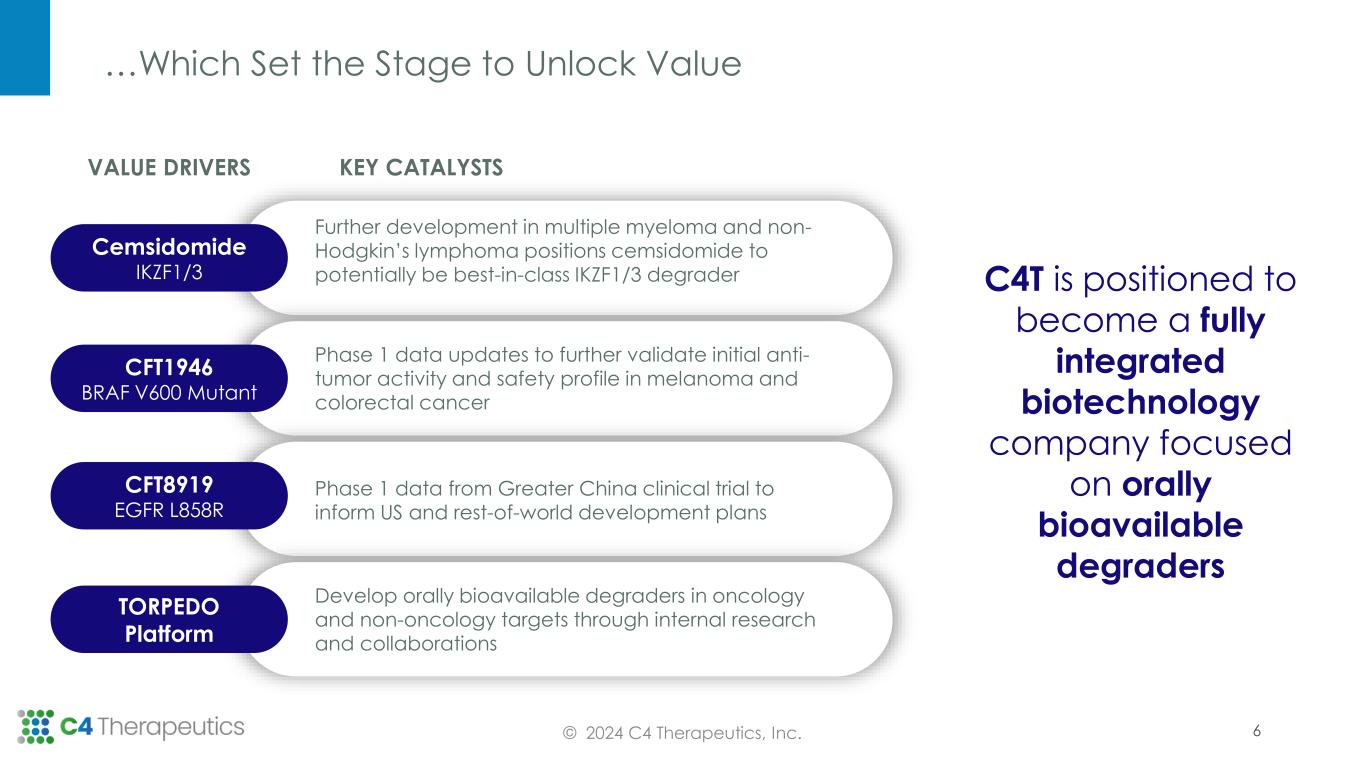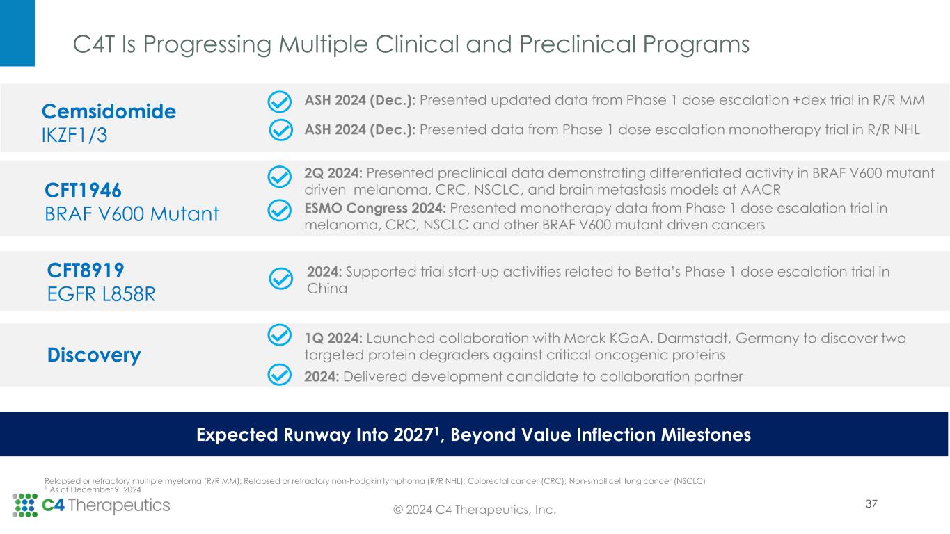 At the ASH Annual Meeting, C4T presented safety and anti-myeloma data demonstrating cemsidomide has the potential to become a best-in-class IKZF1/3 degrader used as a backbone therapy of choice for patients with multiple myeloma where IKZF1/3 degradation is warranted.