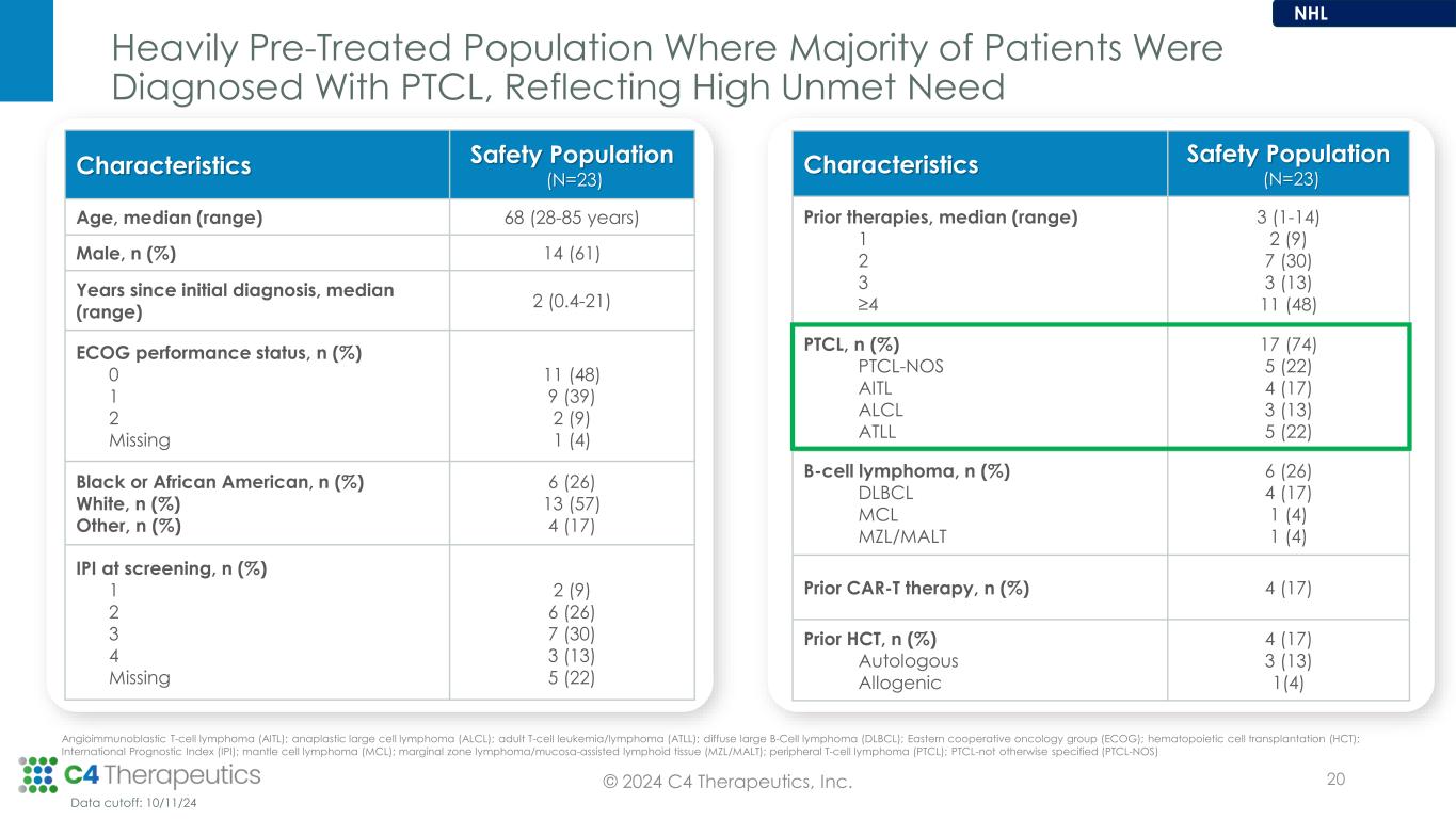 •As of the data cutoff, 21 patients were evaluable for efficacy, 16 of which had PTCL.