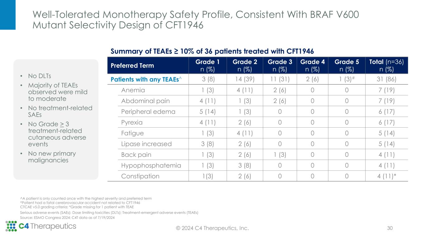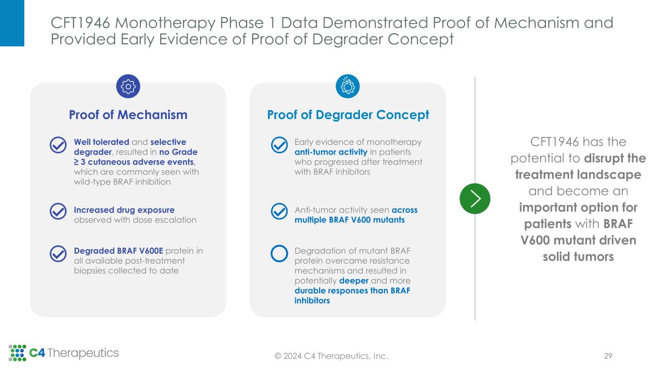 C4 Therapeutics (C4T) (Nasdaq: CCCC) is a clinical-stage biopharmaceutical company dedicated to delivering on the promise of targeted protein degradation science to create a new generation of medicines that transforms patients’ lives. C4T is progressing targeted oncology programs through clinical studies and leveraging its TORPEDO® platform to efficiently design and optimize small-molecule medicines to address difficult-to-treat diseases. C4T’s degrader medicines are designed to harness the body’s natural protein recycling system to rapidly degrade disease-causing proteins, offering the potential to overcome drug resistance, drug undruggable targets and improve patient outcomes. For more information, please visit www.c4therapeutics.com.