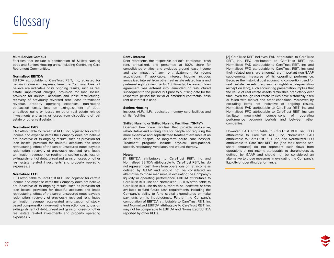 本プレスリリースおよび関連する電話会議における「ctre」、「caretrust」、「caretrust reit」または「当社」という表現は、文脈上別段必要とされない限り、caretrust reit, inc.とその連結子会社を指すものです。gaapとは、米国で一般に公正妥当と認められた会計原則を指します。