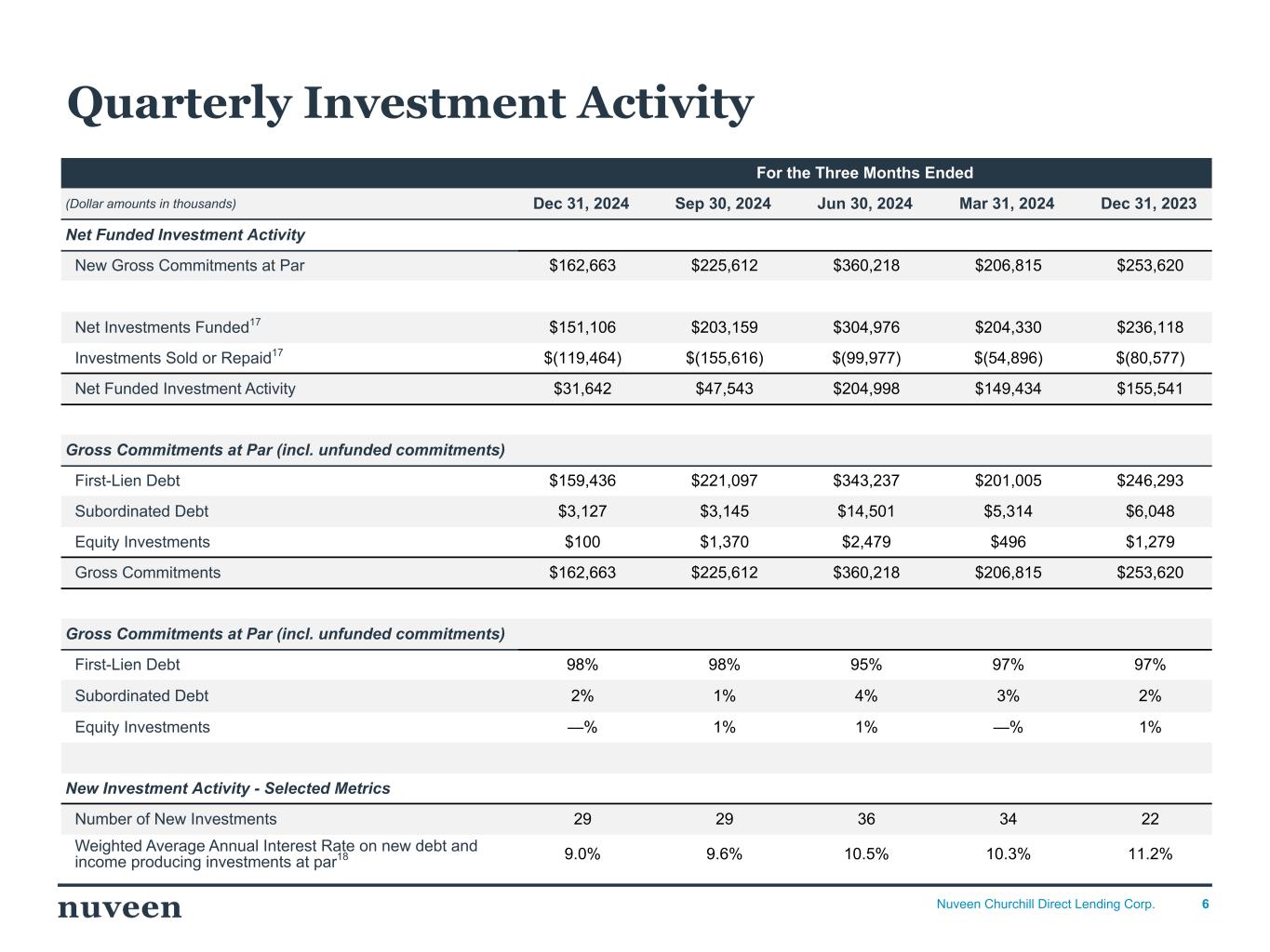 2024年9月30日に終了した3ヵ月間については、それぞれ2億320万ドルおよび1億5,560万ドルであったのに対し、12月31日に終了した3ヵ月間については、1億5,110万ドルのポートフォリオ投資に資金を供給し、元本の返済および売却から1億1,950万ドルの収入を得た。