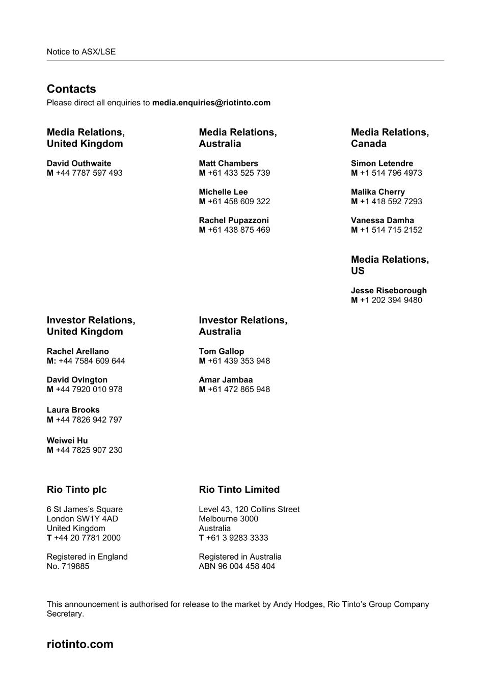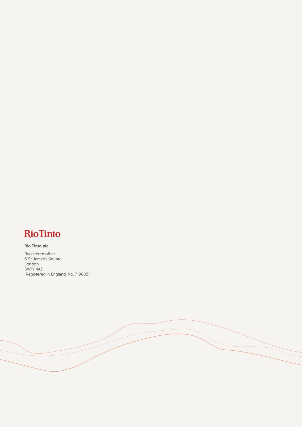 Rio Tinto plc Registered office: 6 St James’s Square London SW1Y 4AD (Registered in England, No. 719885)