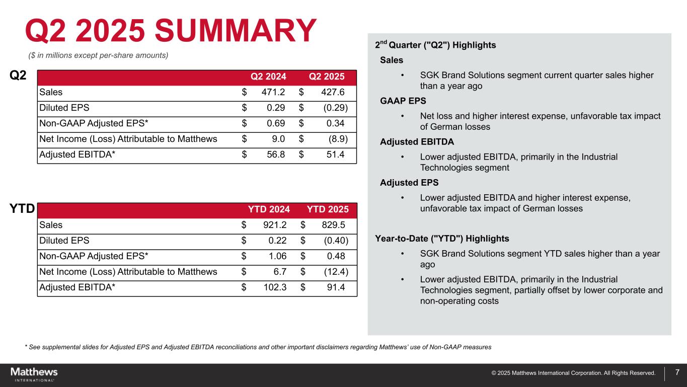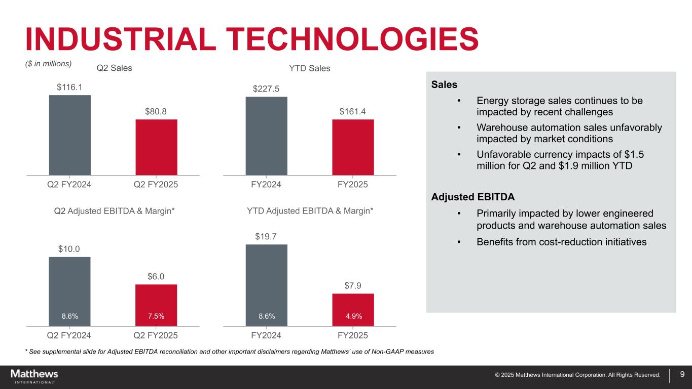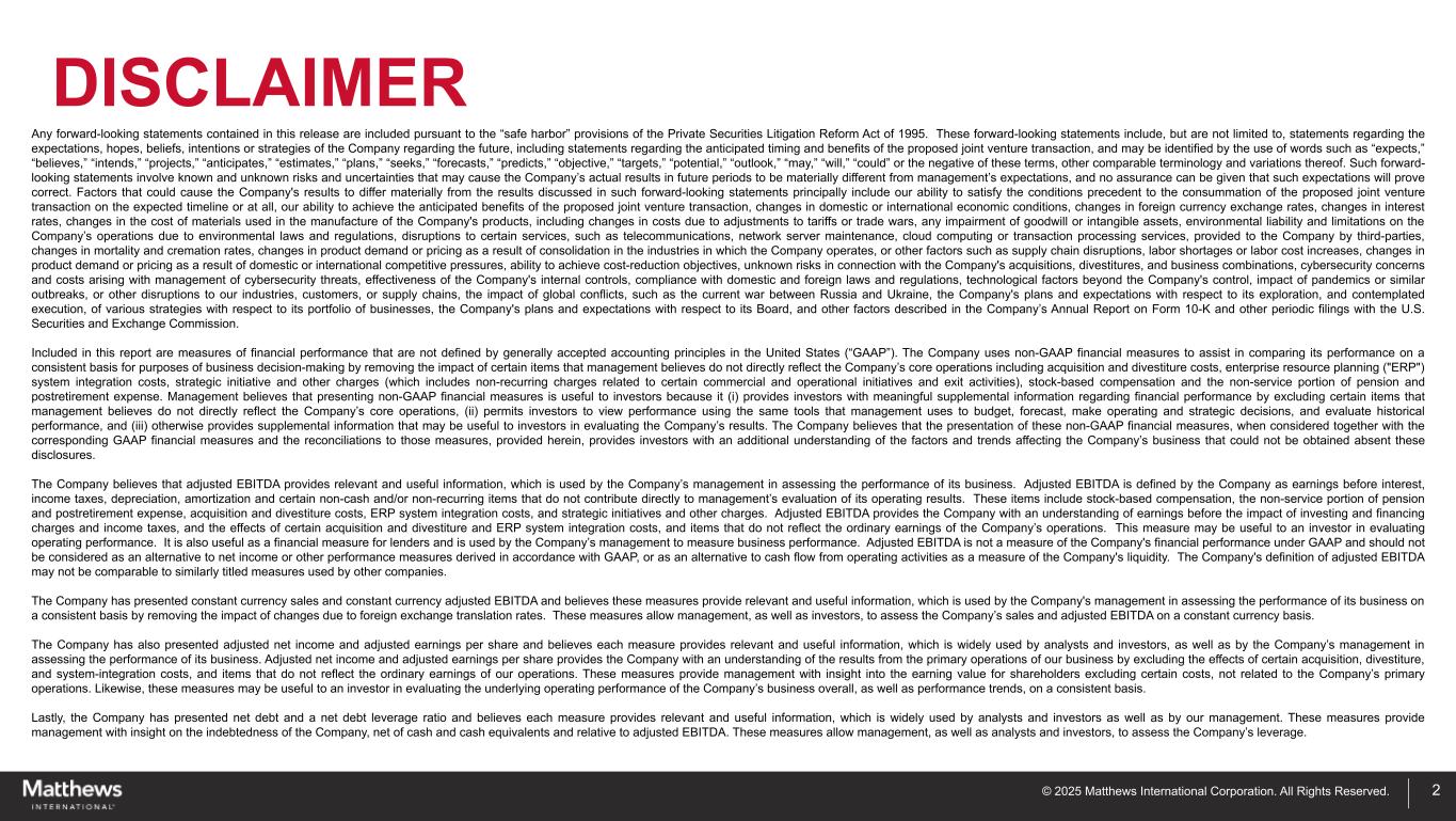 ペンシルベニア州ピッツバーグ、2025年4月30日-マシューズ・インターナショナル・コーポレーション(NASDAQ GSM:MATW)は本日、2025年度第2四半期の決算を発表した。