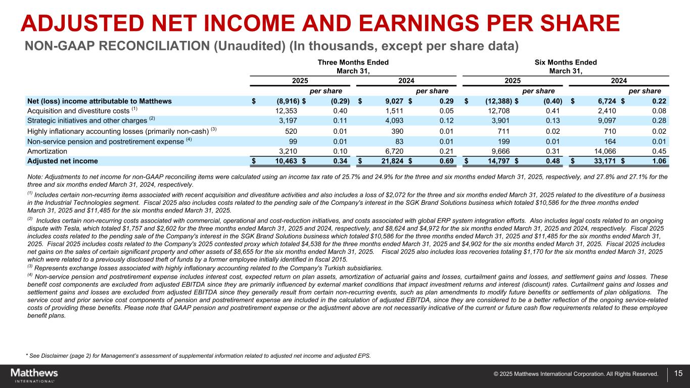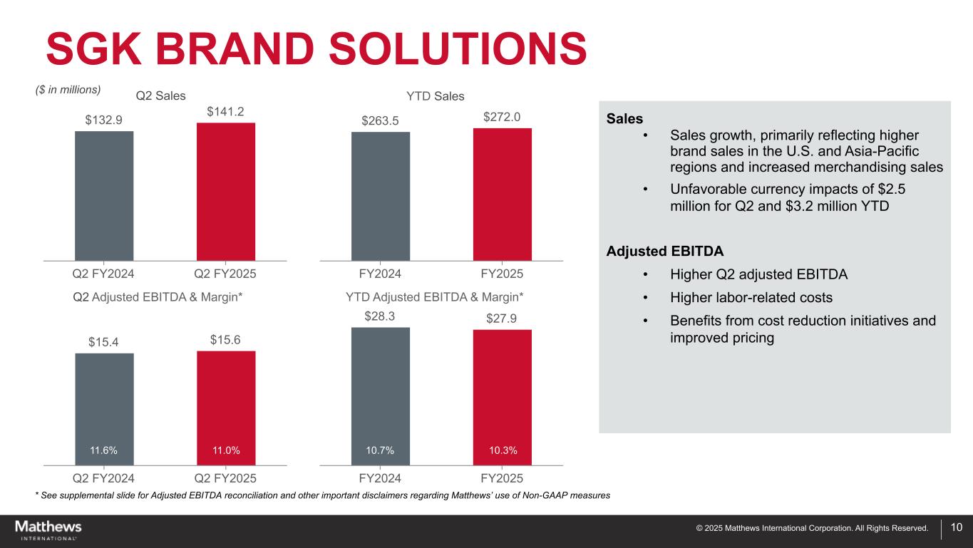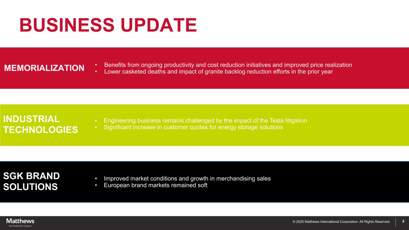 ペンシルベニア州ピッツバーグ、2025年4月30日-マシューズ・インターナショナル・コーポレーション(NASDAQ GSM:MATW)は本日、2025年度第2四半期の決算を発表した。