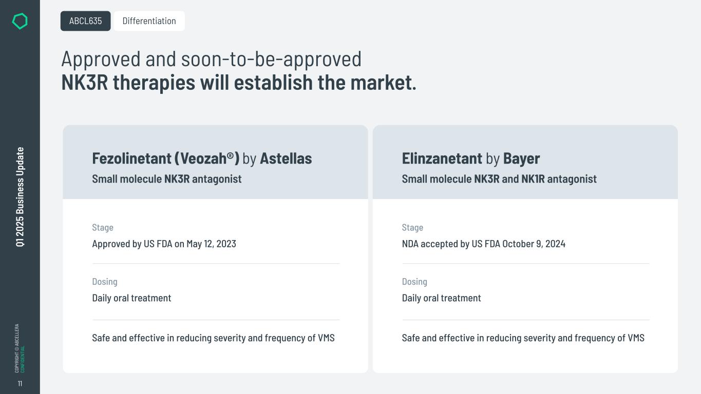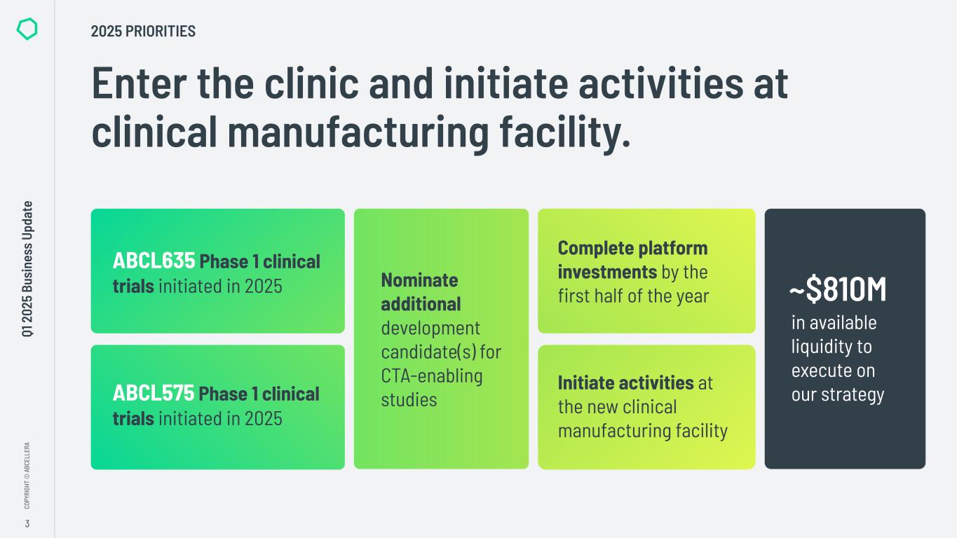 “After completion of a successful first quarter, we are excited to introduce ABCL635 as a potential first-in-class antibody for the non-hormonal treatment of vasomotor symptoms (hot flashes) associated with menopause. ABCL635 is positioned as a next-generation neurokinin 3 receptor (NK3R) antagonist with an improved safety profile and convenient dosing regimen. If successful, we believe it has the potential to be a highly differentiated product in a large and established market,” said Carl Hansen, Ph.D., founder and CEO of AbCellera. “We ended the quarter with over $800 million in available liquidity to execute on our strategy and anticipate starting Phase 1 clinical trials for both ABCL635 and ABCL575 in the second half of 2025.”