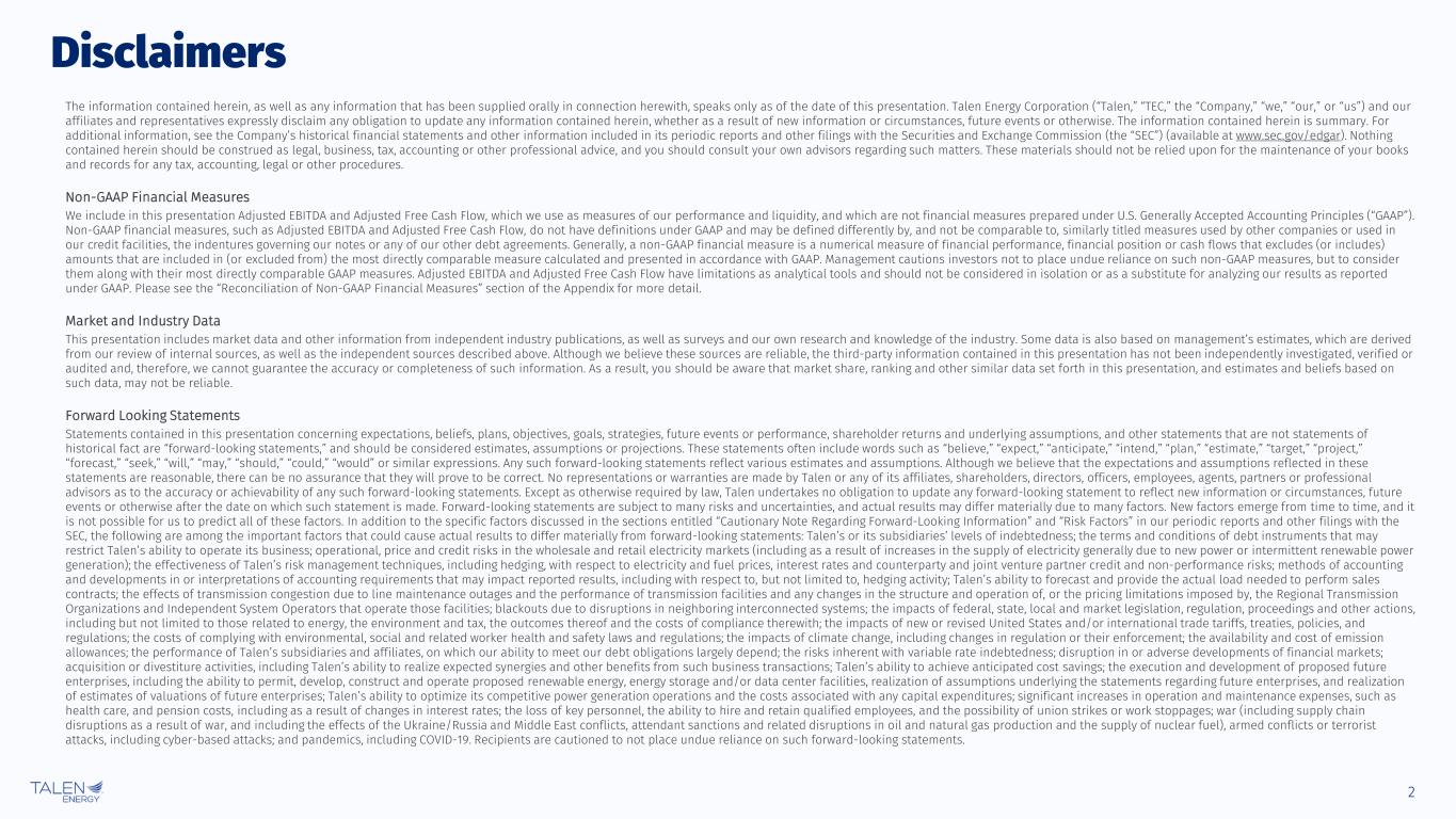 Talen Energy (NASDAQ: TLN) is a leading independent power producer and energy infrastructure company dedicated to powering the future. We own and operate approximately 10.7 gigawatts of power infrastructure in the United States, including 2.2 gigawatts of nuclear power and a significant dispatchable fossil fleet. We produce and sell electricity, capacity, and ancillary services into wholesale U.S. power markets, with our generation fleet principally located in the Mid-Atlantic and Montana. Our team is committed to generating power safely and reliably and delivering the most value per megawatt produced. Talen is also powering the digital infrastructure revolution. We are well-positioned to capture this significant growth opportunity, as data centers serving artificial intelligence increasingly demand more reliable, clean power. Talen is headquartered in Houston, Texas. For more information, visit https://www.talenenergy.com/.
