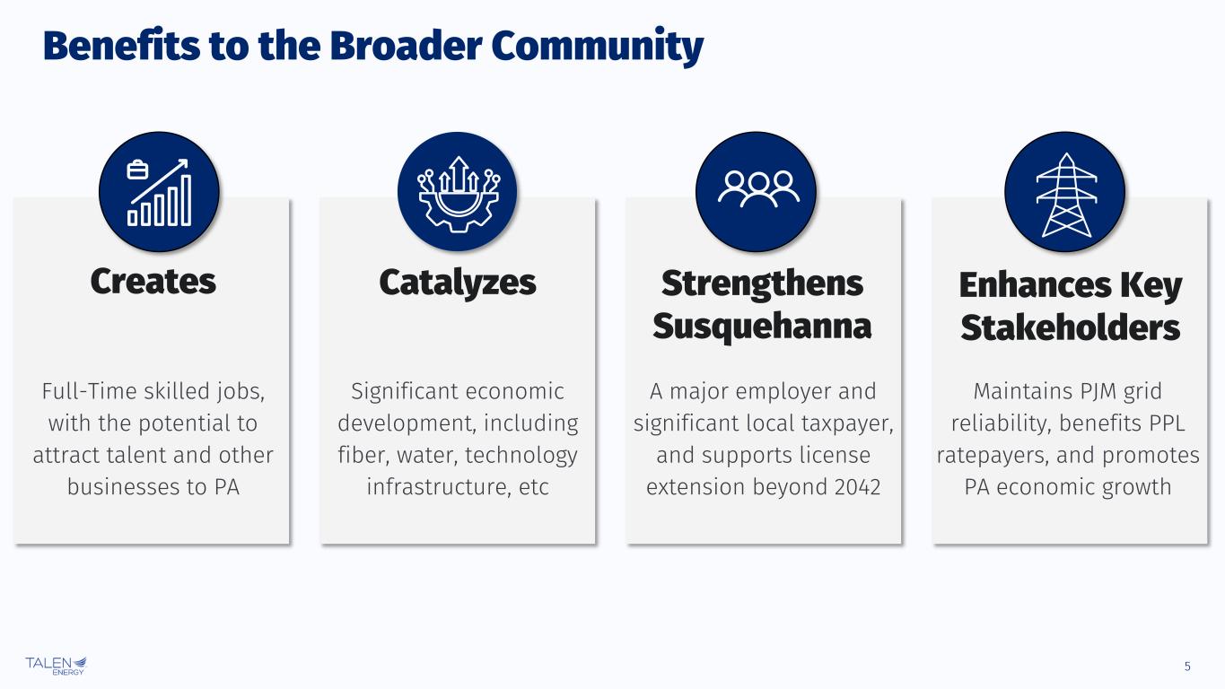 The Talen and Amazon relationship will help safe, reliable nuclear energy continue to be generated at Susquehanna for years to come, maintaining its contributions to the local community and supporting Pennsylvania’s energy future while also helping to power Amazon’s AI innovation investments in the Commonwealth. Talen is a major employer and significant local taxpayer, and the agreement supports the jobs of more than 900 employees currently working at the Susquehanna facility, as well as new construction jobs.
