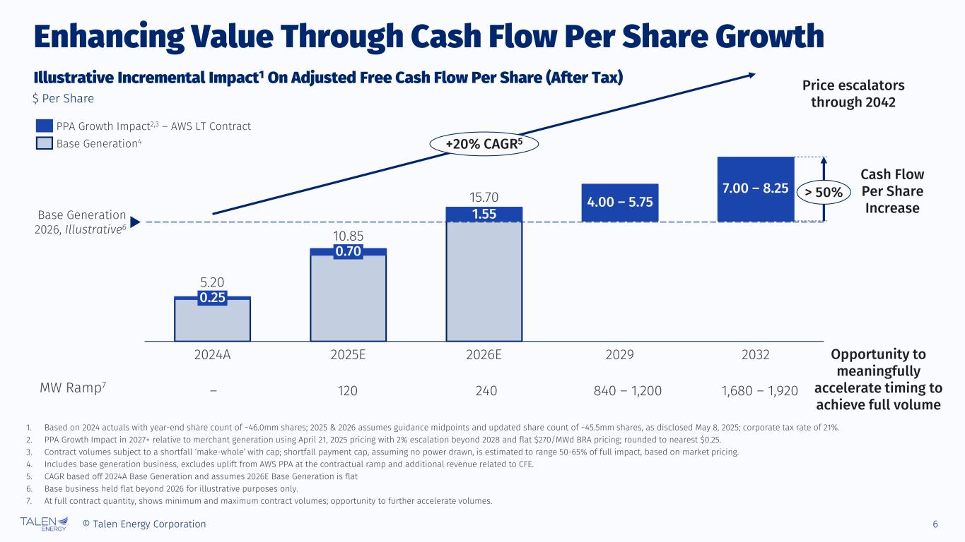 Under the expanded PPA, at the full contract quantity, Talen will provide Amazon with 1,920 megawatts of carbon-free nuclear power through 2042, with options to further extend its duration. The power delivery schedule will ramp over time, expecting to achieve the full volume no later than 2032, with the potential to meaningfully accelerate. This long-term transaction will significantly decrease Talen’s market risk and minimize its reliance on the Federal nuclear production tax credit.