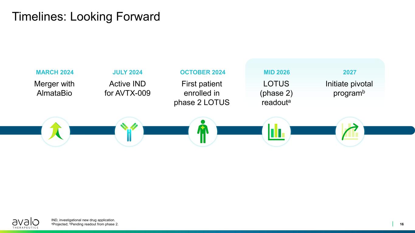 Diagnosed and Treated HS Population is Projected to Grow Substantially into a $10B+ Global Market by 20351 15 HCP, healthcare provider; HS, hidradenitis suppurativa; U.S., United States. 1. HS Market Research 2024. Avalo Therapeutics Data on File; 2. Garg A, et al. Am J Clin Dermatol. 2023;24:977-990; 3. Garg AX, et al. Dermatol Ther. 2022;3:581-594; 4. Ingram JR, et al. J Eur Acad Dermatol Venereol. 2022;36(9):1597-1605; 5. Rinderknecht FB, Naik HB. Int J Womens Dermatol. 2024;10(1):e130. HS affects an estimated 1–4% of the population globally; 0.5% US population CAGR 3.4 MILLION IN 2024 3.5 MILLION PROJECTED IN 2035 1.0 MILLION IN 2024 1.6 MILLION PROJECTED IN 2035 ~100 THOUSAND IN 2024 >200 THOUSAND PROJECTED IN 2035 320 THOUSAND IN 2024 >500 THOUSAND PROJECTED IN 2035 HS prevalence (U.S.)2 HS diagnosed and treated (U.S)3 Growth in the number of diagnosed and treated patients from 30% to 45% of the total population, driven by new development and visibility with HCPs and patients Moderate-to-severe HS (U.S.)4 Increased recognition of disease leads to 60% growth of identified moderate to severe HS Biologics treated (U.S.)5 New approvals will lead to more patients being treated with biologics, increasing to ~40% share of segment (evidenced by the recent quickly growing use of Cosentyx and Bimzelx)