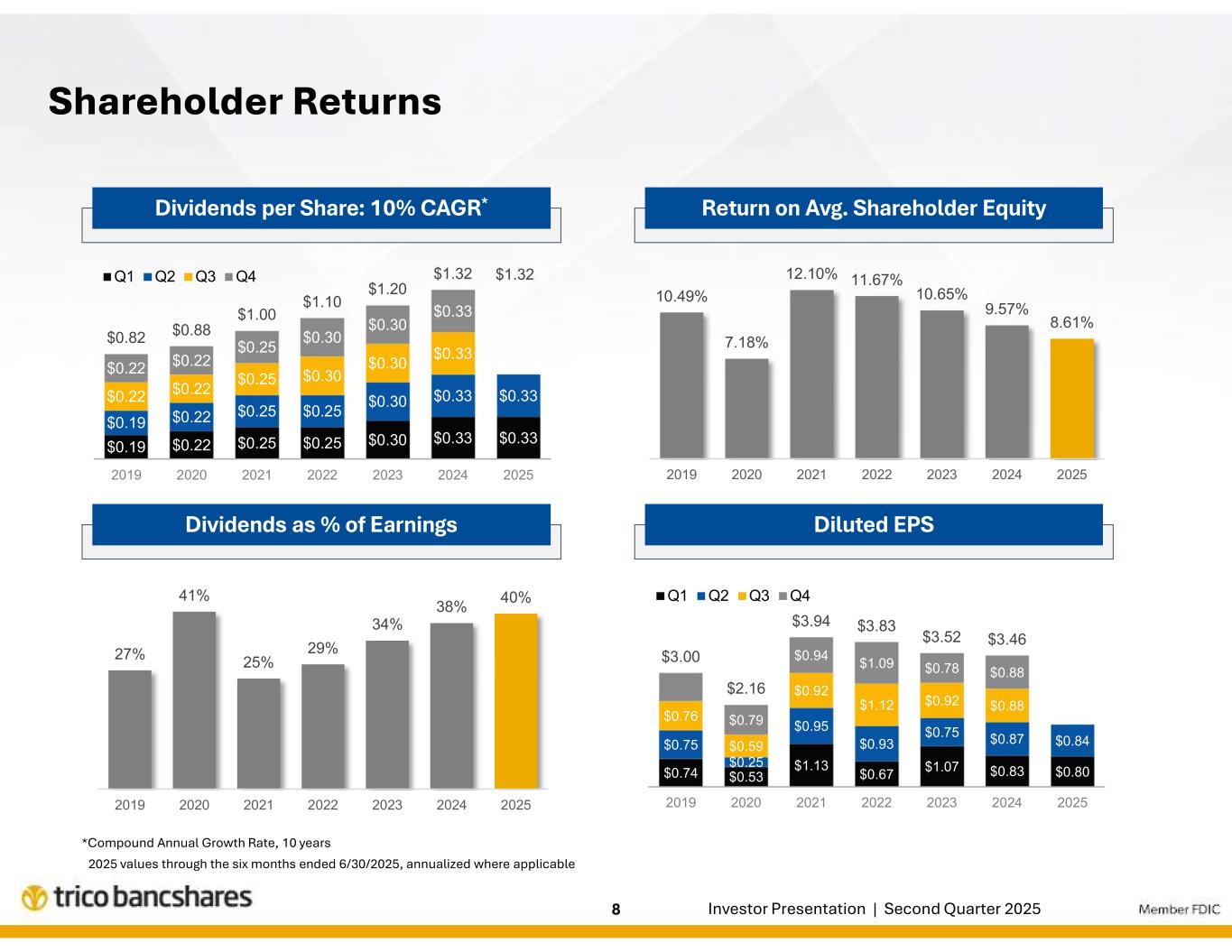 | トライコ・バンクシェアーズ、2025年第2四半期の純利益は2750万ドル、希薄化後EPSは0.84ドル |