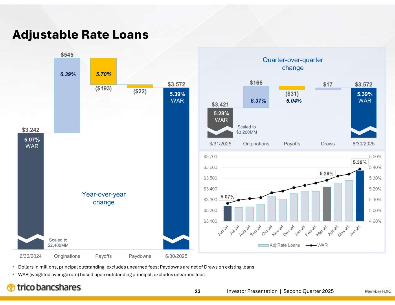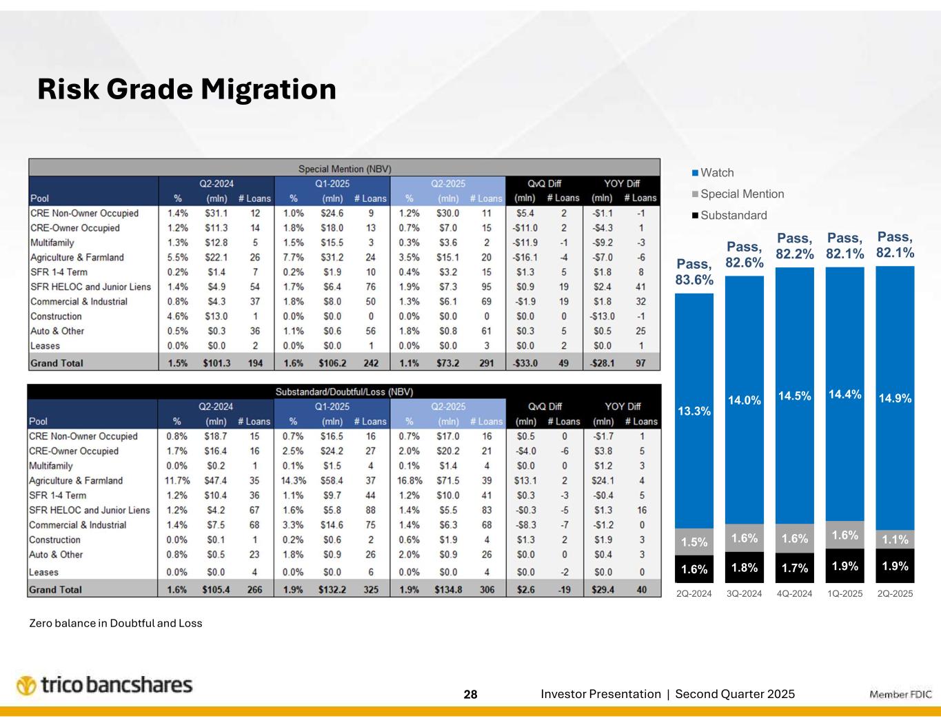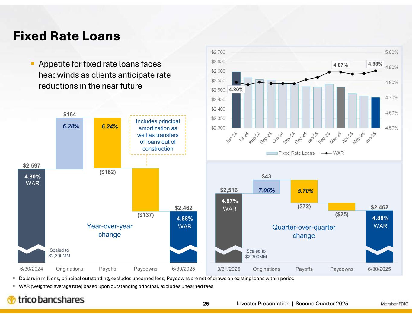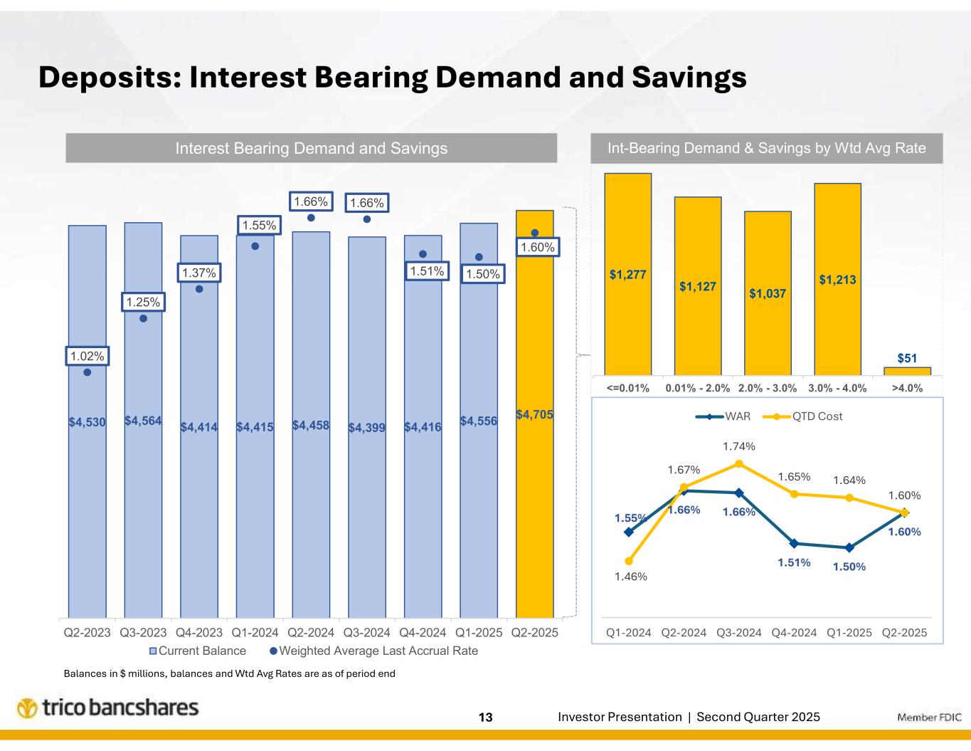 | エグゼクティブのコメント「当四半期のハイライトは、貸出・預金ともに新規・拡大した取引関係による成長であった。このようなバランスシートの成長により、2025年の残り期間を通じて純利息収益の拡大がさらに促進されるものと期待しています。リック・スミス社長兼最高経営責任者(CEO)は次のように述べた。「当行の信用の質は引き続き高く、ポートフォリオ全体が当行の歴史的に高い水準に合致した業績を上げ続けることに引き続き自信を持っています。また、ピーター・ヴィーゼEVP兼CFOは、「当行の純金利マージンの見通しは引き続き安定しており、継続的な収益資産利回りと資金調達コストの改善により、純金利収益のさらなる増加が見込まれます。当四半期の人件費の増加は主に生産量の増加によるものですが、会社全体の効率率は低下しており、引き続き営業レバレッジの改善に注力しています。 |