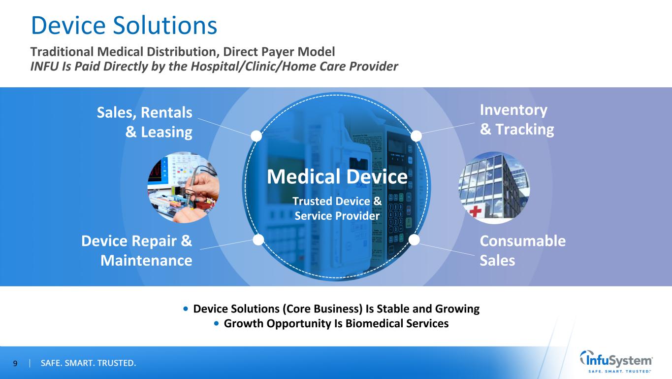 Medical Device Sales, Rentals & Leasing Consumable Sales Device Repair & Maintenance Device Solutions Traditional Medical Distribution, Direct Payer Model INFU Is Paid Directly by the Hospital/Clinic/Home Care Provider Trusted Device & Service Provider Inventory & Tracking • Device Solutions (Core Business) Is Stable and Growing • Growth Opportunity Is Biomedical Services 9