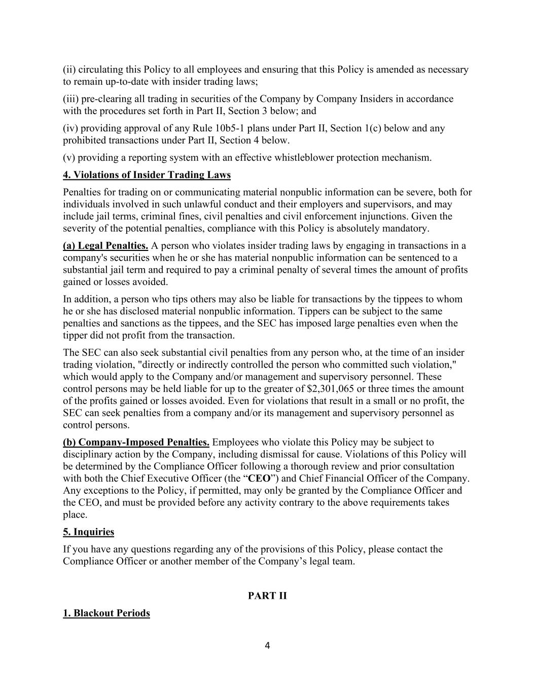 Other Recoupment Rights: The Board intends that this Policy will be applied to the fullest extent of the law. The Board may require that any employment agreement, equity award agreement, or similar agreement entered into on or after the Effective Date shall, as a condition to the grant of any benefit thereunder, require a Covered Executive to agree to abide by the terms of this Policy. Any right of recoupment under this Policy is in addition to, and not in lieu of, any other remedies or rights of recoupment that may be available to the Company pursuant to the terms of any similar policy in any employment agreement, equity award agreement, or similar agreement and any other legal remedies available to the Company.