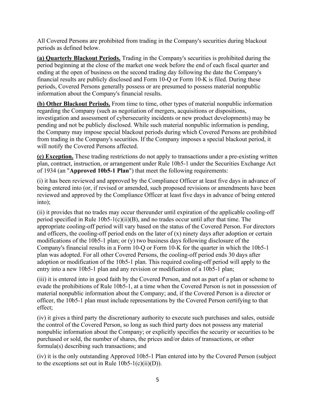 Covered Executives: This Policy applies to the Company’s current and former executive officers, as determined by the Board in accordance with Section 10D of the Exchange Act and the listing standards of the national securities exchange on which the Company’s securities are listed, and such other senior executives who may from time to time be deemed subject to the Policy by the Board (“Covered Executives”).