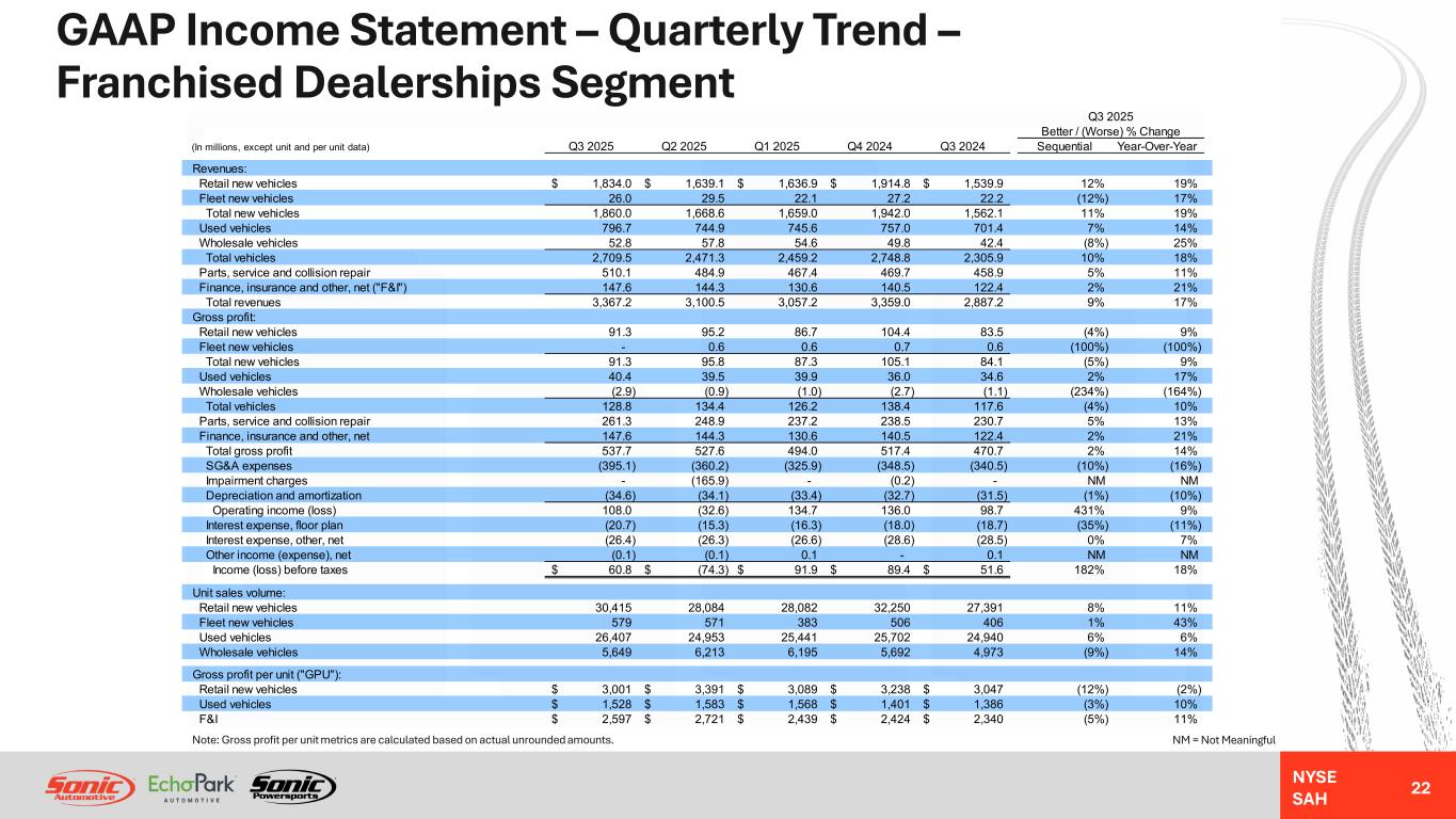 | Retail new vehicles | (1,775.4) | (1,479.2) | (20) | % | (4,909.2) | (4,293.4) | (14) | % | |||||||||||||||||||||||||||
