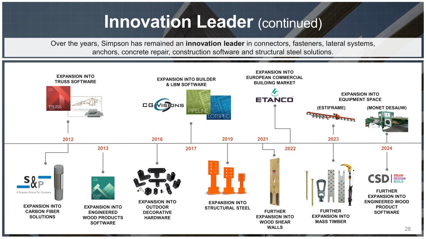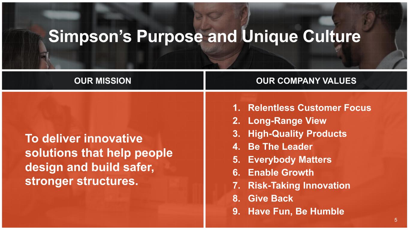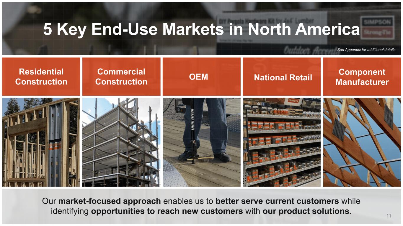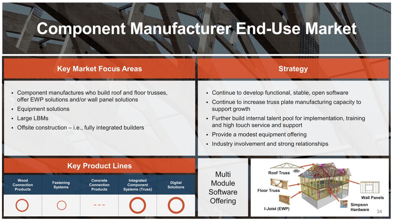 カリフォルニア州プレザントンに本社を置くシンプソン・マニュファクチャリング社は、その子会社であるシンプソン・ストロングタイ・カンパニー社を通じて、コネクター、トラスプレート、ファスニングシステム、ファスナー、シアウォールなどの木造建築製品、接着剤、特殊化学品、メカニカルアンカー、粉末作動工具、補強用炭素繊維・ガラス繊維材料などのコンクリート建築製品の設計、エンジニアリング、製造を行っている。同社は主に北米および欧州の住宅・商業市場に建築用製品を供給している。同社の普通株式はニューヨーク証券取引所で "SSD "のシンボルで取引されている。