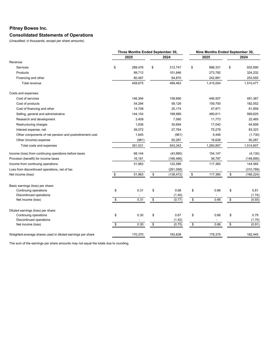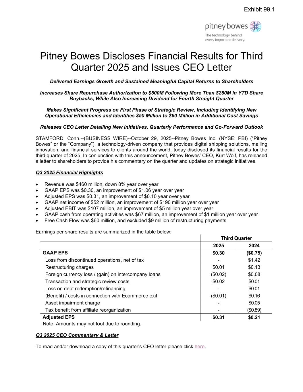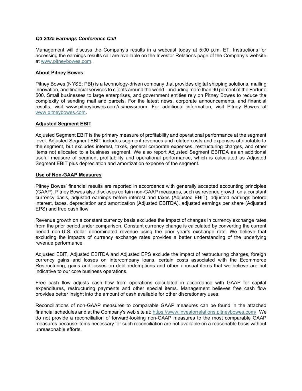 2025年10月29日報告日(報告された最も古い事象の日付) Pitney Bowes Inc.