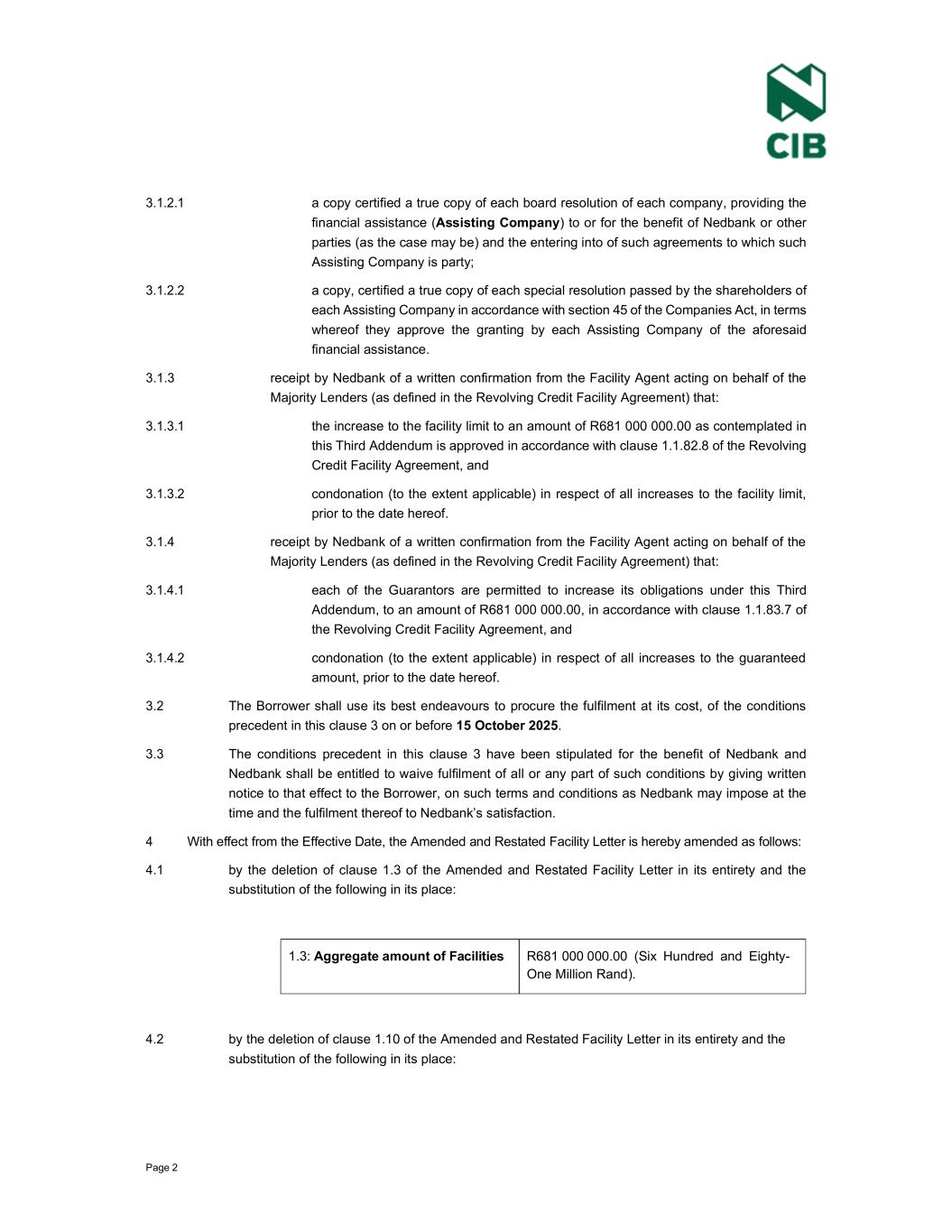 •the Board has resolved to authorise the acquisition and that the Group will satisfy the solvency and liquidity test immediately after the acquisition and that since the test was done there have been no material changes to the financial position of the Group;