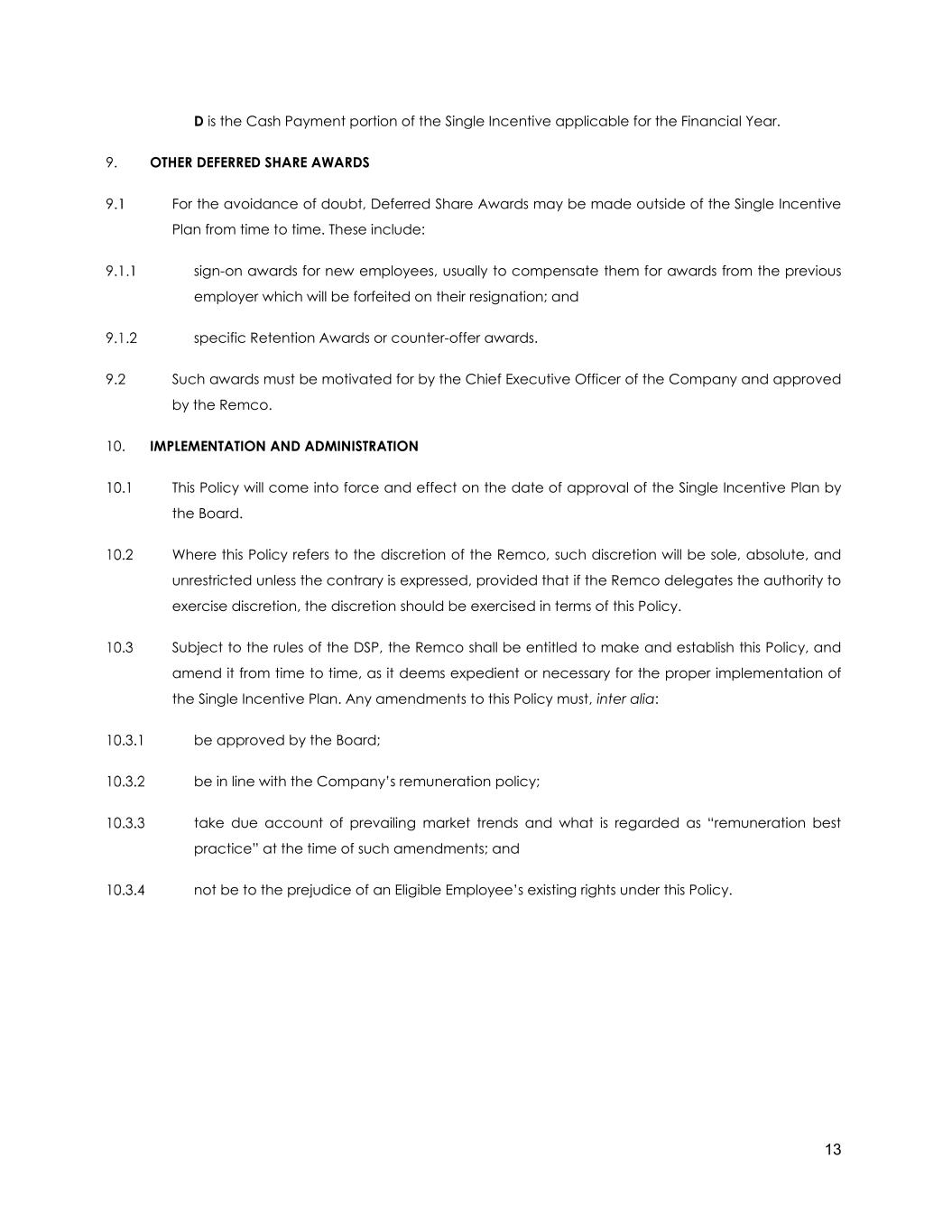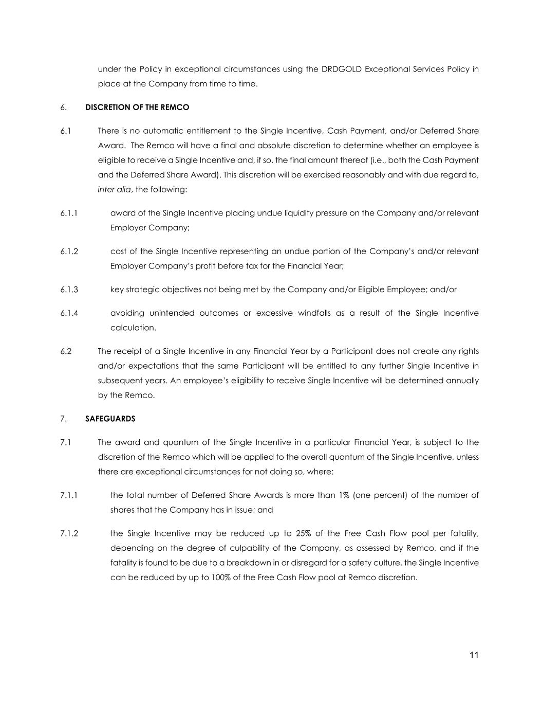 •the number of shares acquired by subsidiaries of DRDGOLD shall not exceed 10 per cent. in the aggregate of the number of issued shares in DRDGOLD.