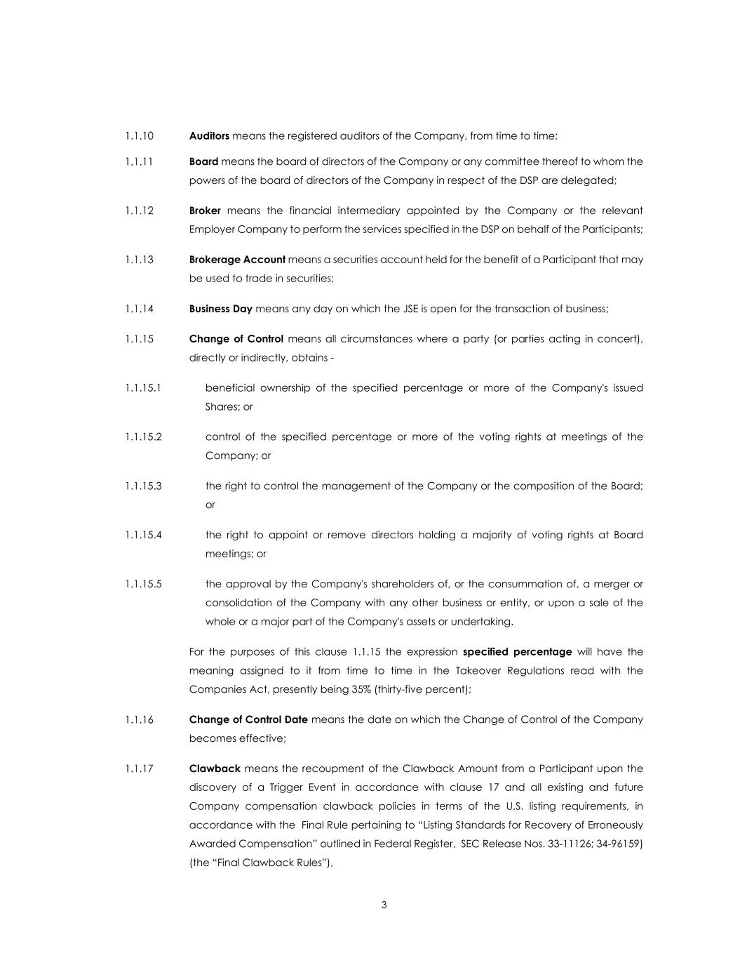 The DRDGOLD MOI does not contain any provisions that would have the effect of delaying, deferring or preventing a change in control of the company and that would operate only with respect to a merger, acquisition or corporate restructuring involving the company (or any of its subsidiaries).