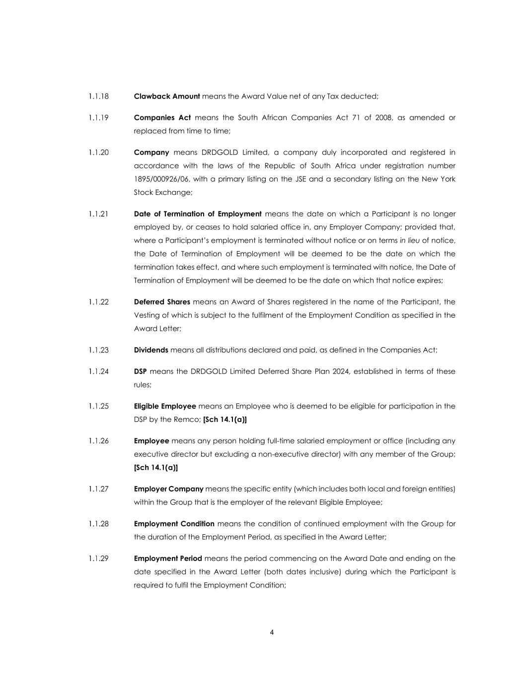 •a sub-division of DRDGOLD’s equity securities; and/or