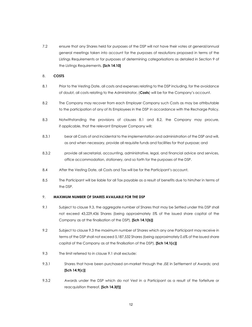 In accordance with the provisions of the JSE Listings Requirements and the DRDGOLD MOI, the Board shall not have the power to issue authorised shares other than: