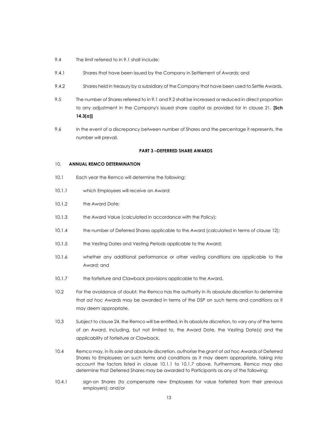 •the issue of capitalisation shares or the offer of a cash payment in lieu of awarding capitalisation shares; and