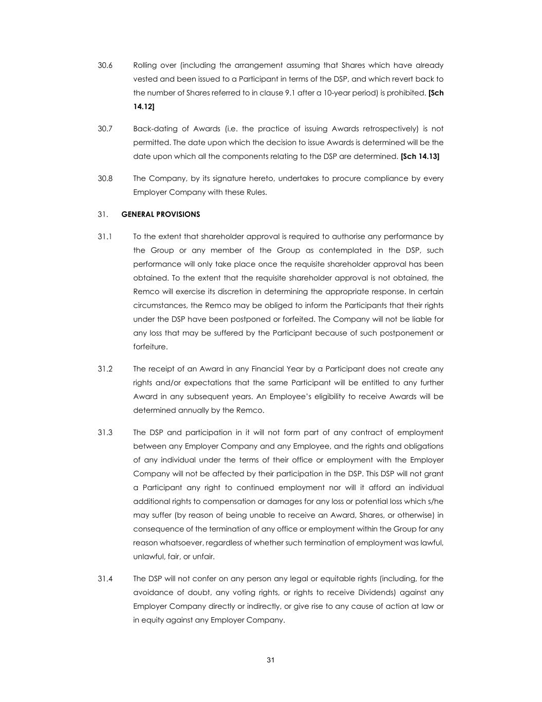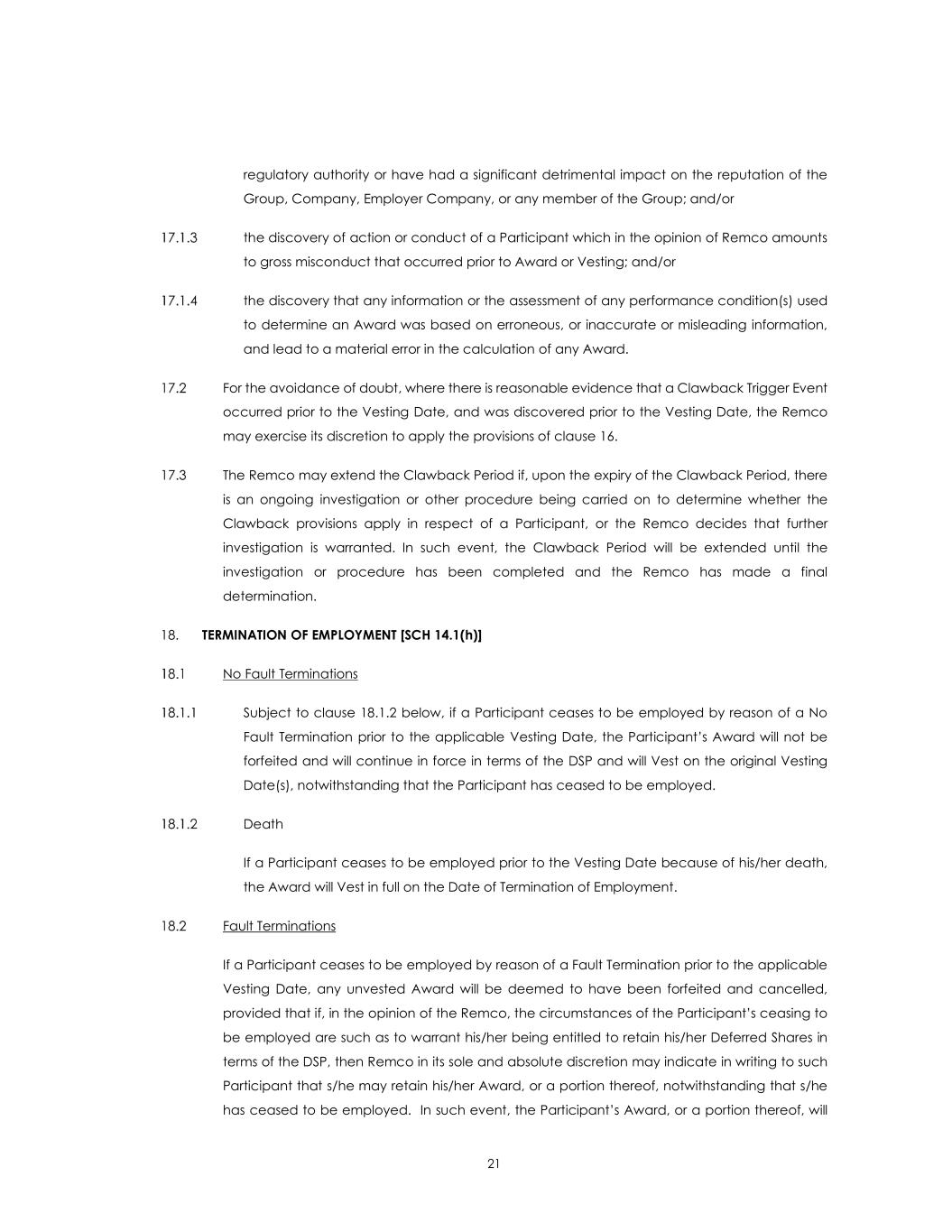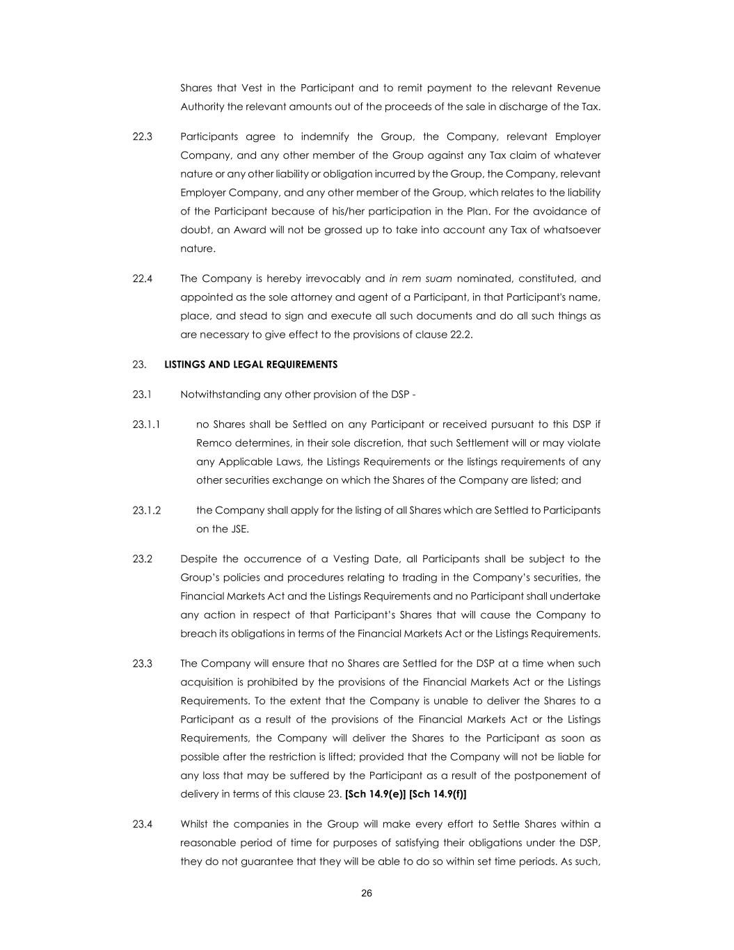 •incur no liability to holders or beneficial owners of ADRs if any present or future law, rule, regulation, fiat, order or decree of the United States, the Republic of South Africa or any other country or jurisdiction, or of any governmental or regulatory authority or securities exchange or market or automated quotation system, the provisions of or governing any deposited securities, any present or future provision of our charter, any act of God, war, terrorism, nationalization, expropriation, currency restrictions, work stoppage, strike, civil unrest, revolutions, rebellions, explosions, computer failure or circumstance beyond our, the Depositary’s or our respective agents’ direct and immediate control shall prevent or delay, or shall cause any of them to be subject to any civil or criminal penalty in connection with, any act which the Deposit Agreement or the ADRs provide shall be done or performed by us, the Depositary or our respective agents (including, without limitation, voting);