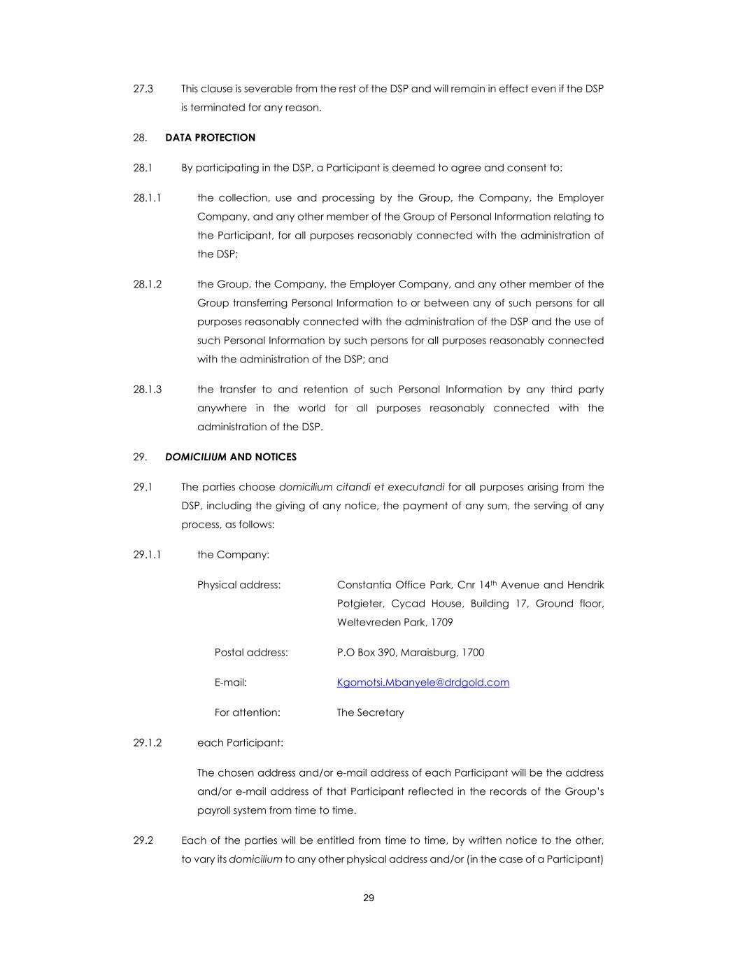 In accordance with the provisions of the JSE Listings Requirements and the DRDGOLD MOI, shareholders may either convey a: