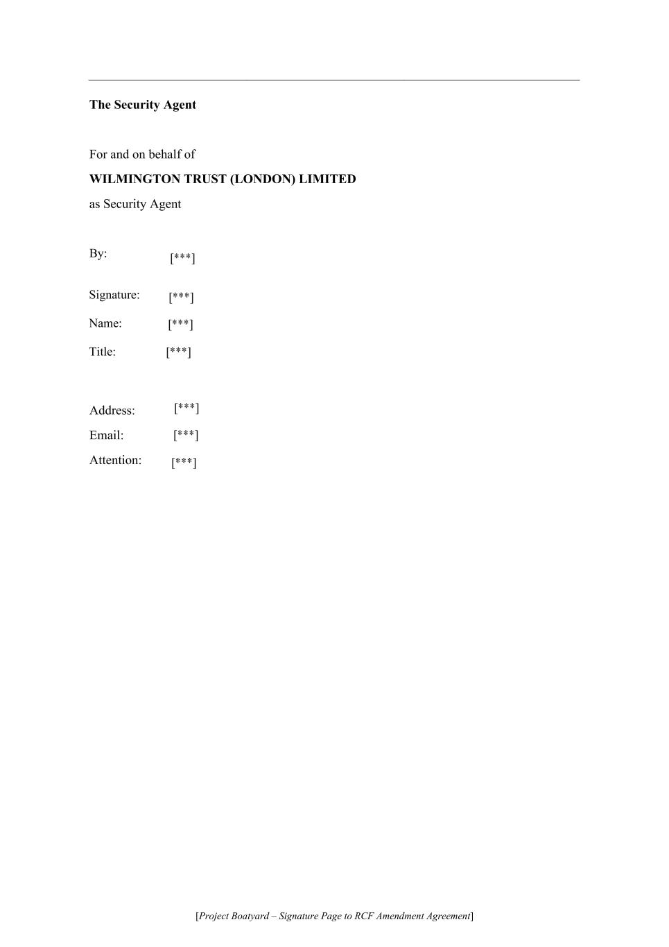 [Project Boatyard – Signature Page to RCF Amendment Agreement] The Security Agent For and on behalf of WILMINGTON TRUST (LONDON) LIMITED as Security Agent By: Signature: Name: Title: Address: Email: Attention: [***] [***] [***] [***] [***] [***] [***]