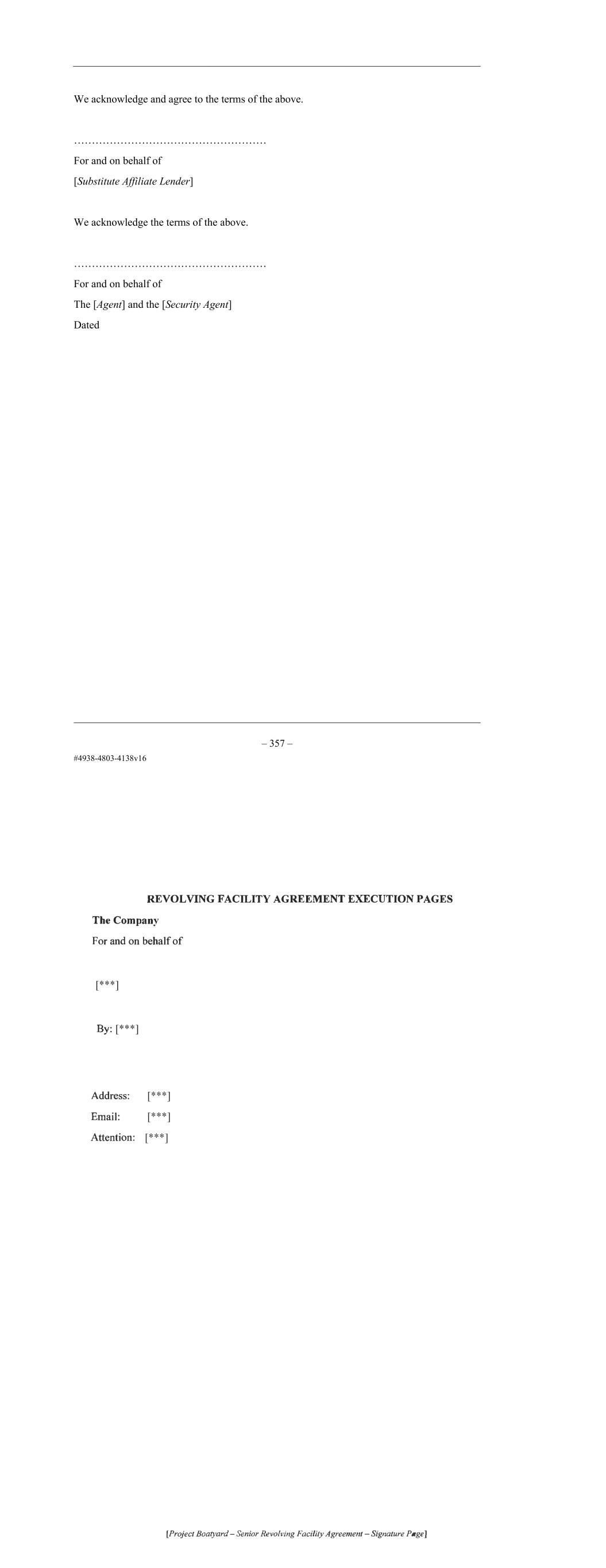 – 145 – We acknowledge and agree to the terms of the above. ……………………………………………… For and on behalf of [Substitute Affiliate Lender] We acknowledge the terms of the above. ……………………………………………… For and on behalf of The [Agent] and the [Security Agent] Dated [Signature pages not restated]