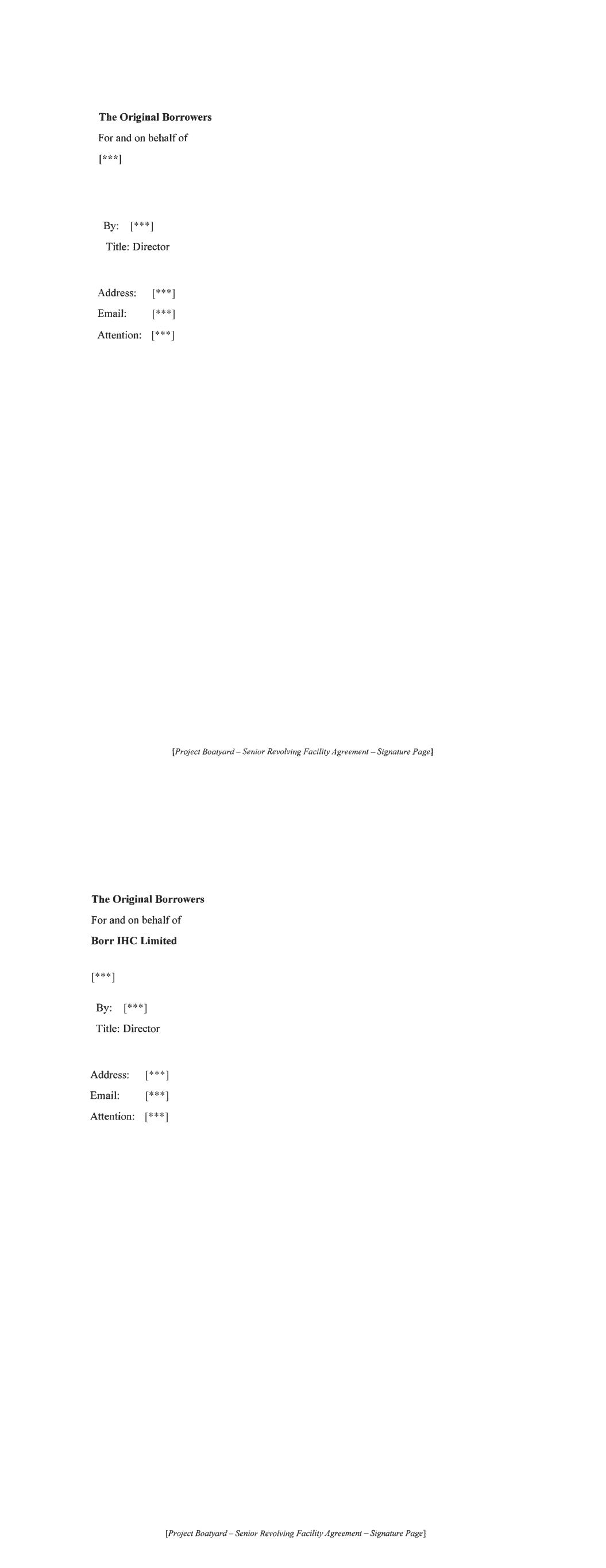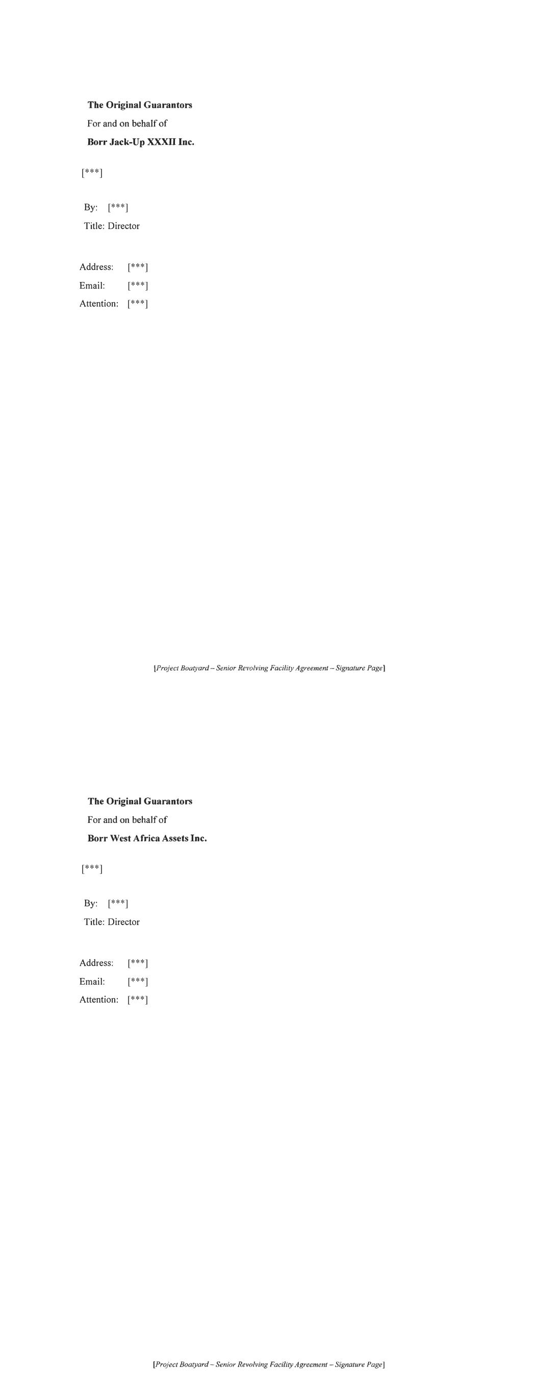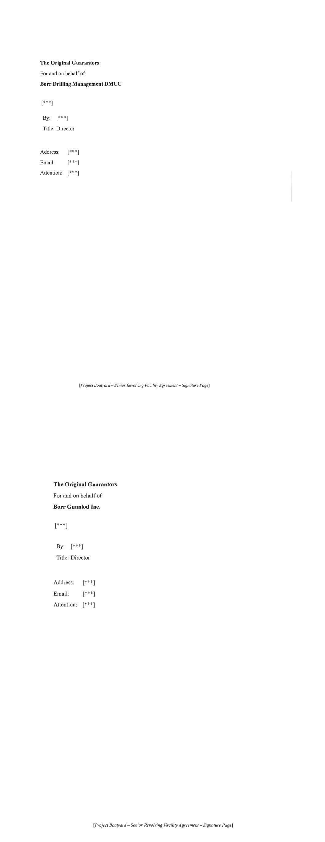 [Signature pages to follow] For and on behalf of BORR DRILLING MANAGEMENT DMCC Title: Director Address: [***] Email: [***] Attention: [***] [Project Boatyard- Signature Page to RCF Amendment Agreement] [***]