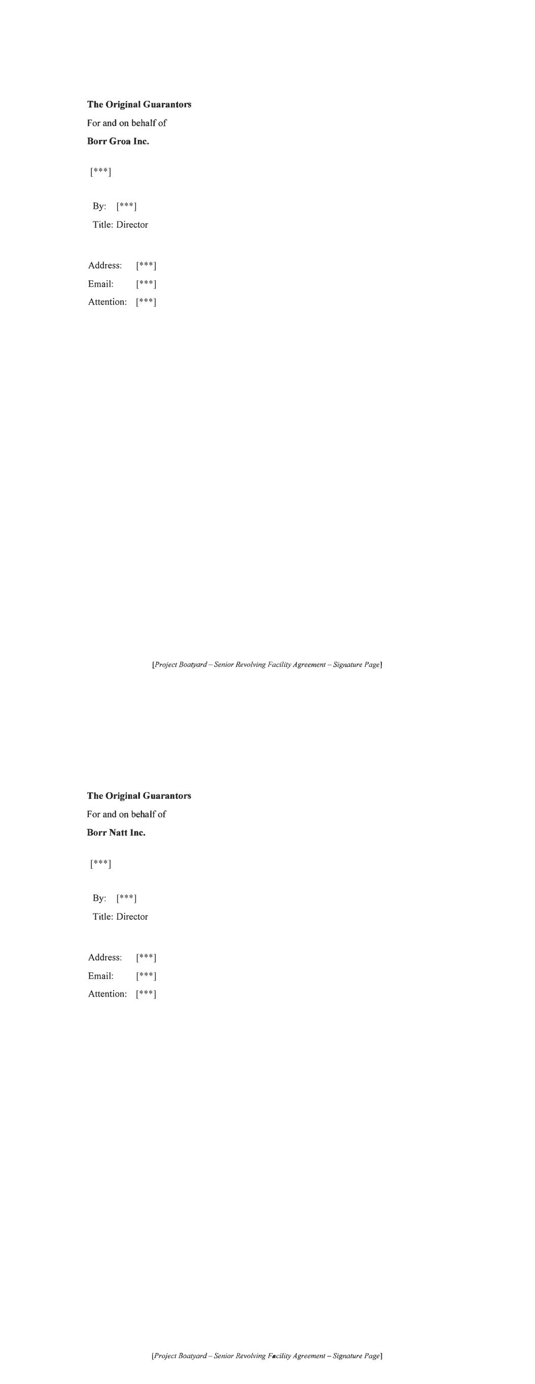 For and on behalf of BORR NATT INC. as Existing Obligor, acting by a director in the presence of: Name: Director Address: [***] [***] [***] [***] [***] For and on behalf of BORR GERD INC. as Existing Obligor, acting by , a director in the presence of: Name: Director Addrcss: [Projecl Boalyard-Signawre Page lo RCF Amendmenl Agreement] [***] [***] [***] [***] [***] [***] Witness's Signature