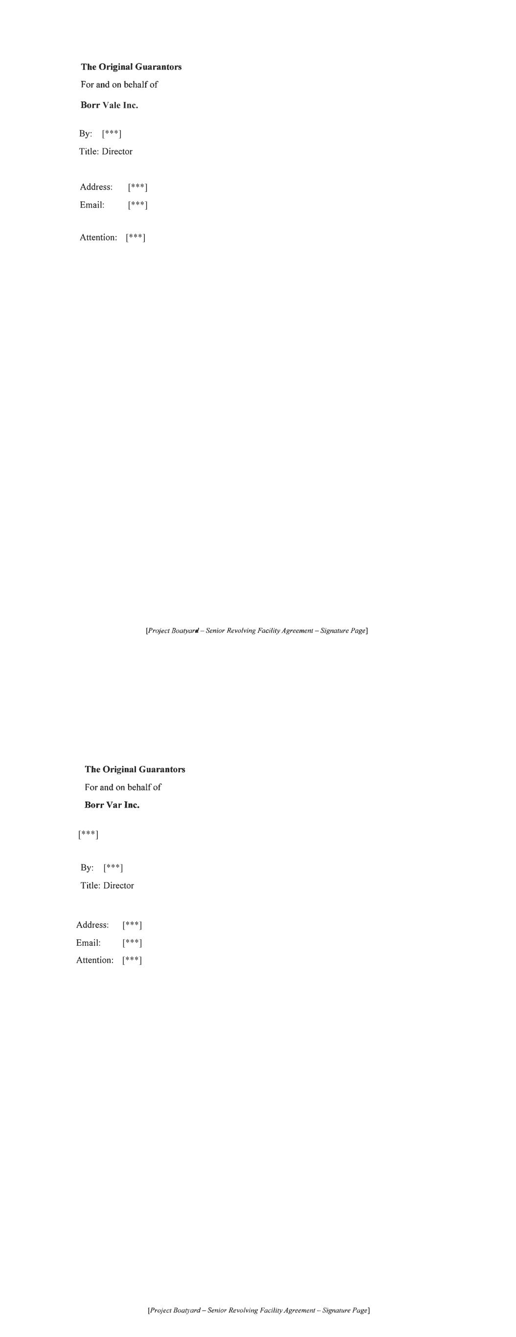 For and on behalf of BORR VALE INC. as Existing Obligor, acting by a director in the presence of: Witness's Signature Name: Director Address: [Project Boatyard - Signature Page to RCF Amendment Agreement] [***] [***] [***] [***] [***] For and on behalf of BORR NORVE LIMITED as Existing Obligor, acting by a director in the presence of: Name: Director Address: [Project Boatyard -Signature Page to RCF Amendment Agreement] [***] [***] [***] [***] [***]