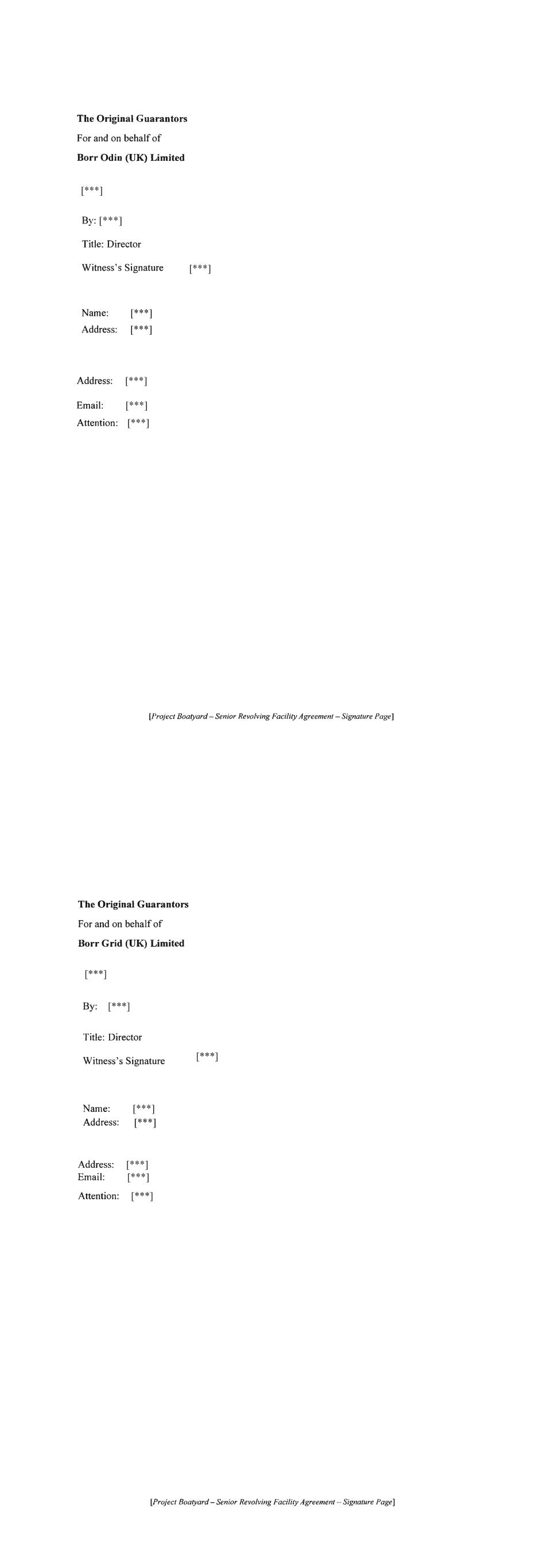 For and on behalf of BOR GRID (UK) LIMITED as Existing Obligor, acting by a director in the presence of: Witness's Signature Name: Director Address: [Project Boatyard - Signature Page to RCF Amendment Agreement] [***] [***] [***] [***] [***] [***] For and on behalf of BORR ODIN (UK) LIMITED as Existing Obligor, acting by a director in the presence of: Witness's Signature Name: Director Address: [Project Boatyard - Signature Page to RCF Amendment Agreement] [***] [***] [***] [***] [***] [***]