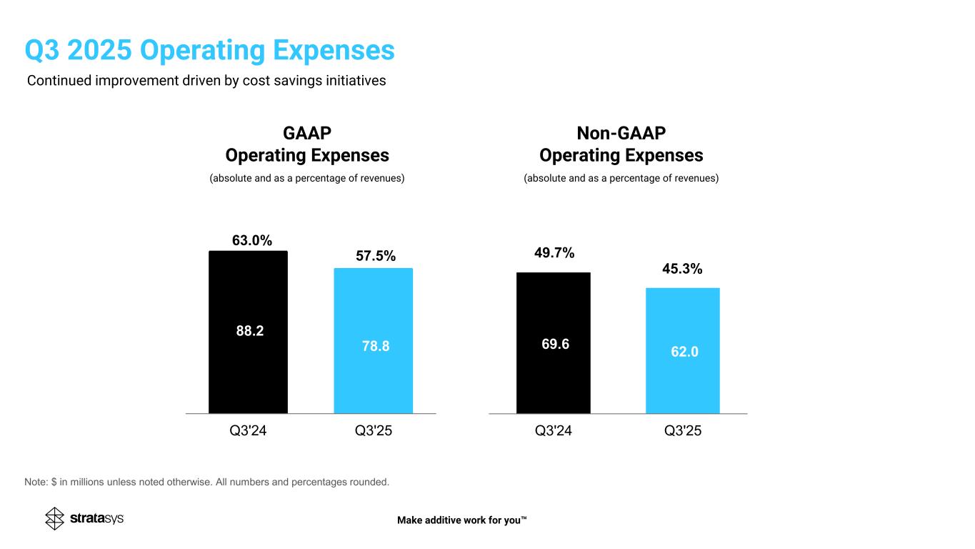 MINNETONKA, Minn. & REHOVOT, Israel - (BUSINESS WIRE) - November 13, 2025 - Stratasys Ltd. (Nasdaq: SSYS), a leader in polymer 3D printing solutions, today announced its financial results for the third quarter ended September 30, 2025.