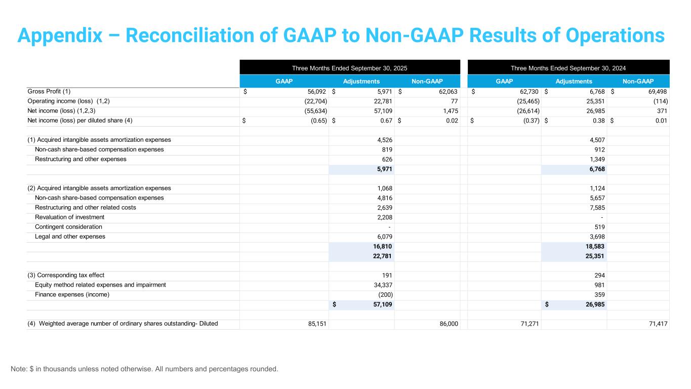 Based on current market conditions and assuming that the impacts of tariff policy, global inflationary pressures, relatively high interest rates and supply chain costs do not impede economic activity further, the Company is reiterating its non-GAAP outlook and adjusting the GAAP Net Loss and EPS due to the above-referenced non-cash impairment to be as follows: