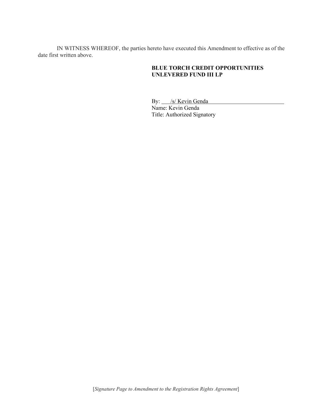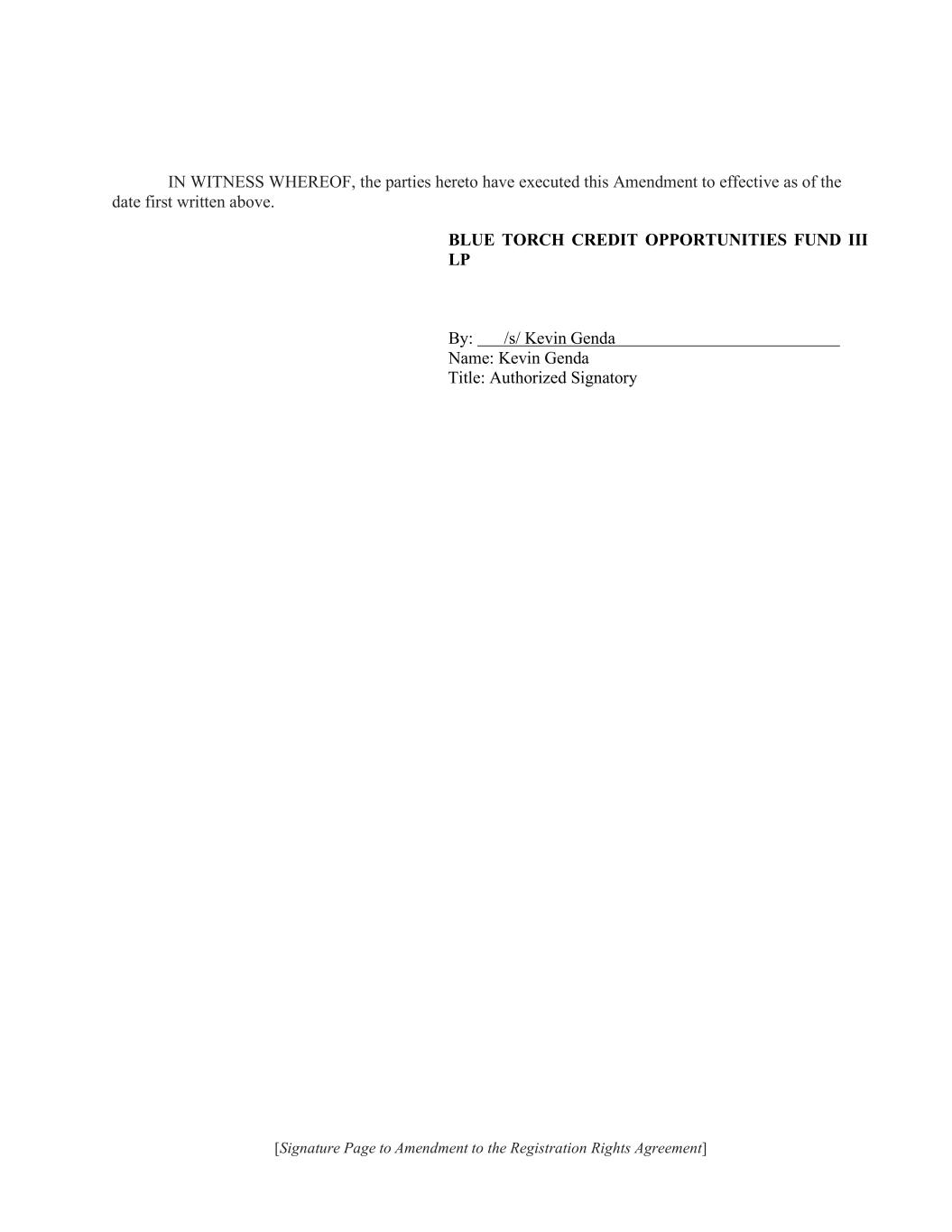 [Signature Page to Amendment to the Registration Rights Agreement] IN WITNESS WHEREOF, the parties hereto have executed this Amendment to effective as of the date first written above. BLUE TORCH CREDIT OPPORTUNITIES FUND III LP By: /s/ Kevin Genda Name: Kevin Genda Title: Authorized Signatory