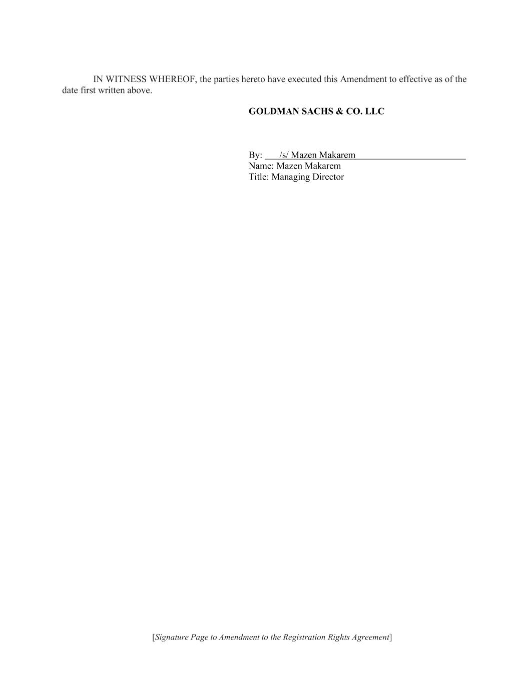 [Signature Page to Amendment to the Registration Rights Agreement] IN WITNESS WHEREOF, the parties hereto have executed this Amendment to effective as of the date first written above. GOLDMAN SACHS & CO. LLC By: /s/ Mazen Makarem Name: Mazen Makarem Title: Managing Director