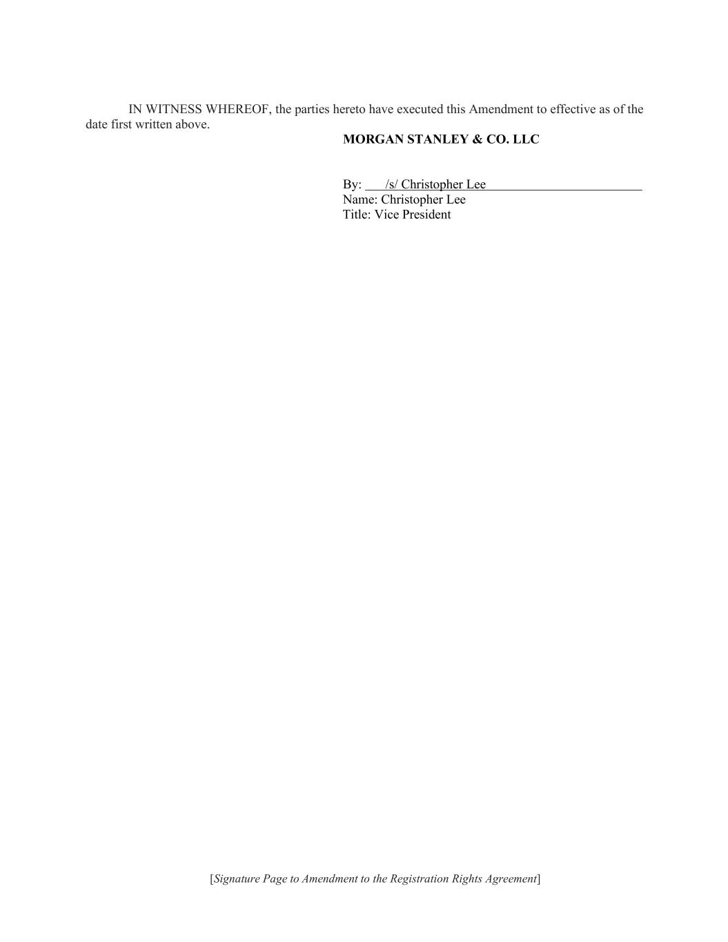 [Signature Page to Amendment to the Registration Rights Agreement] IN WITNESS WHEREOF, the parties hereto have executed this Amendment to effective as of the date first written above. MORGAN STANLEY & CO. LLC By: /s/ Christopher Lee Name: Christopher Lee Title: Vice President