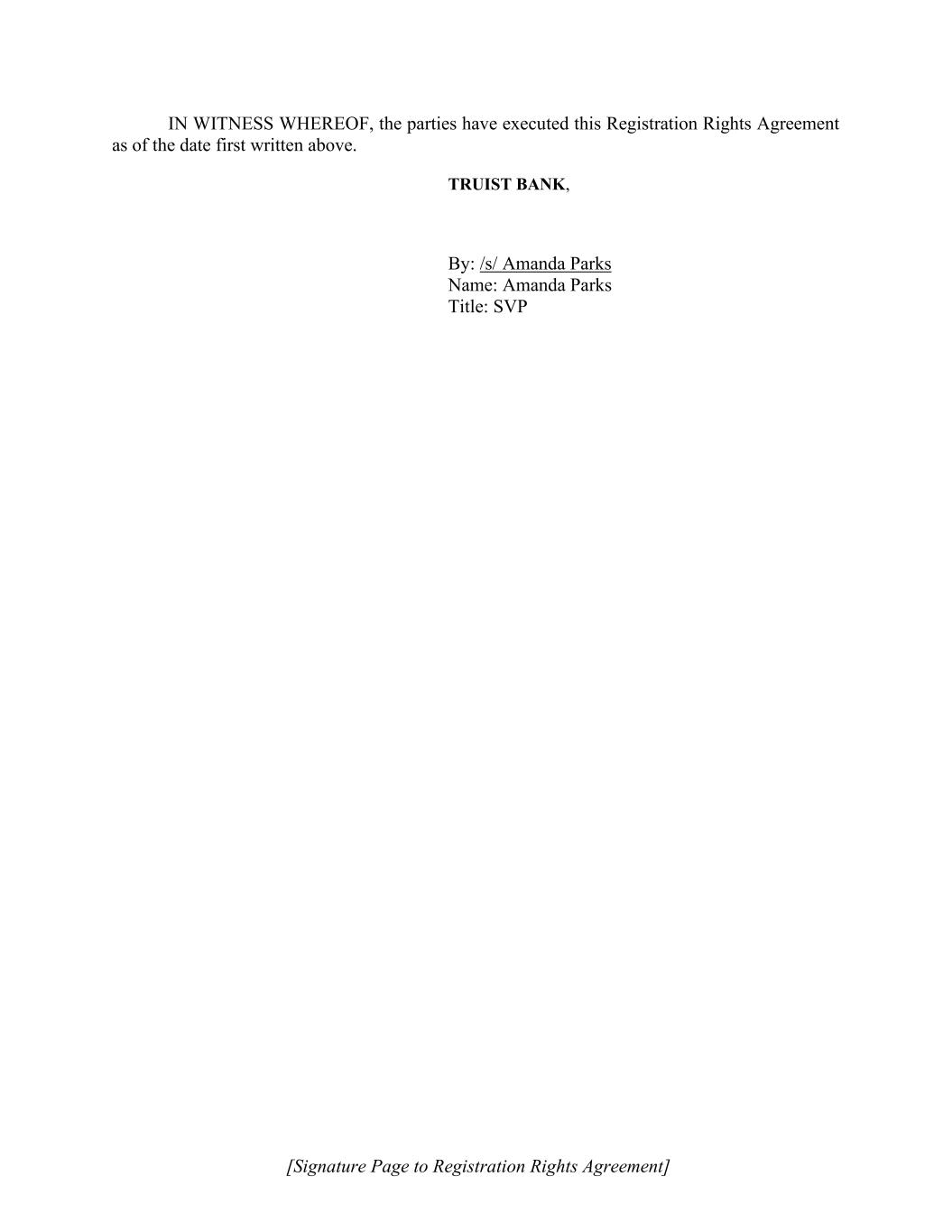 [Signature Page to Registration Rights Agreement] IN WITNESS WHEREOF, the parties have executed this Registration Rights Agreement as of the date first written above. TRUIST BANK, By: /s/ Amanda Parks Name: Amanda Parks Title: SVP